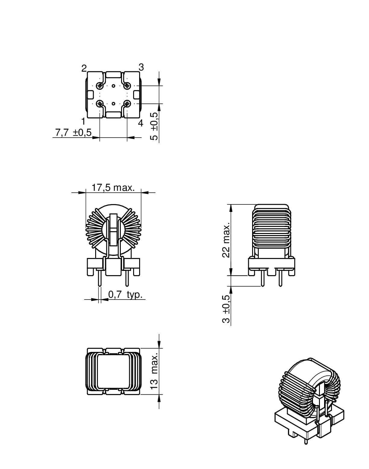 | 744822120 | SPEC | 11 files | Active i| Production is active. Expected lifetime: >10 years. | 0.5 | 20 | 540 | 250 | 1500 | MnZn | 17.5 | 13 | 22 | THT | 744821 744998 | ||