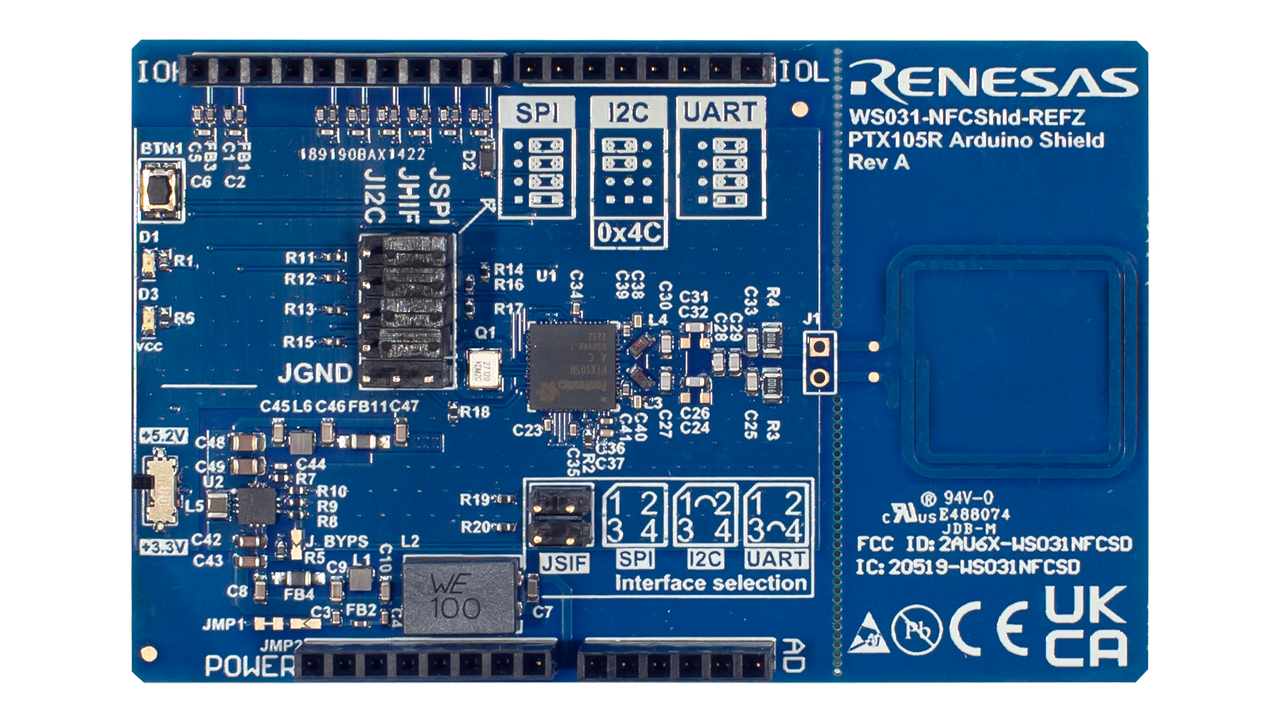 The PTX105R NFC Reader Arduino Shield reference design adds Near Field Communication (NFC) reader, writer, and card emulation capabilities to the Arduino platform, streamlining prototyping and development for IoT applications requiring secure, contactless communication. With multi-protocol support, ready-to-use Arduino IDE libraries, and pre-certification for FCC, CE, UKCA, and ISED standards, it simplifies integration and reduces time to market for connected designs.