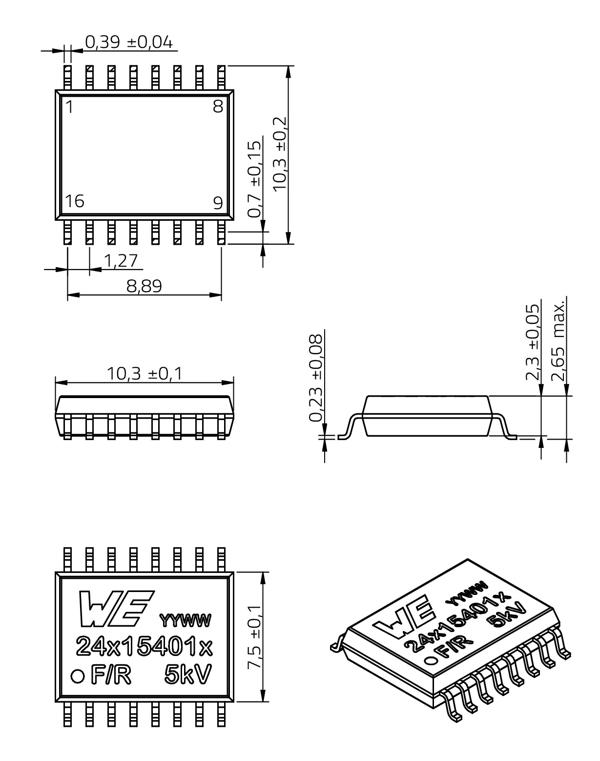 | SOIC 16WB | 10.3 | 10.3 | 2.65 | SMT |