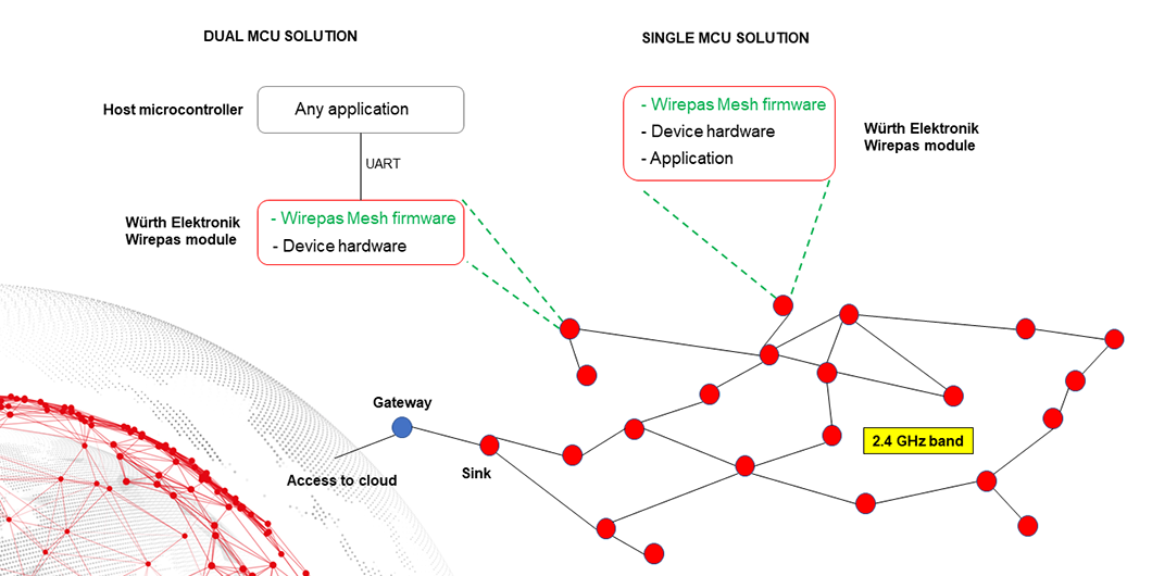 Wirepas ist auf IoT-Themen spezialisiert und bietet den Wirepas Mesh-Stack (nur Firmware) und Support für Großkunden an. Würth Elektronik kooperiert mit Wirepas, um den Wirepas Mesh-Stack in Funkchips zu integrieren und bietet unseren Kunden einen Service zur Entwicklung von Wirepas Mesh-Funkmodulen auf Basis der bestehenden nRF-Plattform von Nordic Semiconductor.