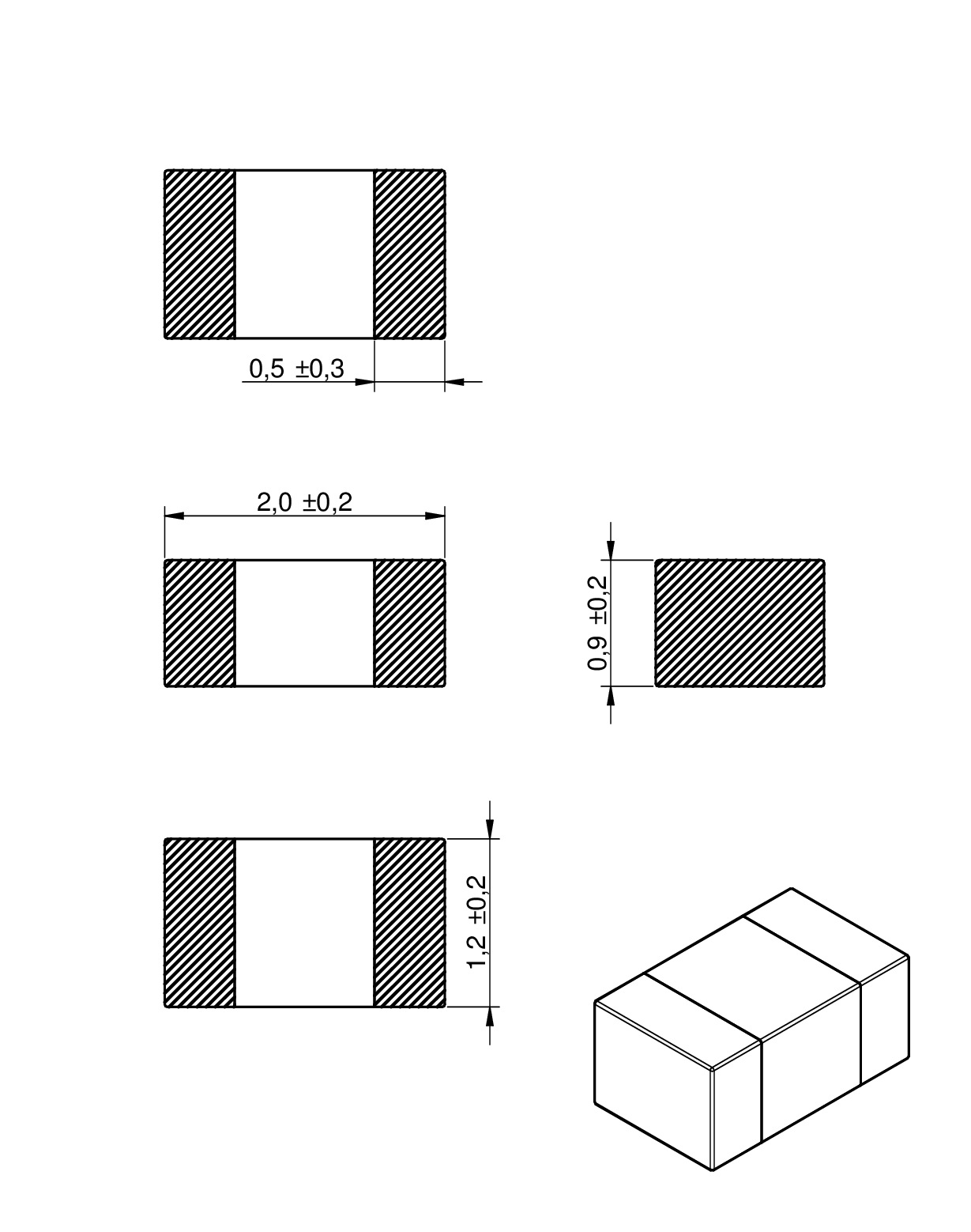 | 0805 | 2 | 1.2 | 0.9 | 0.5 | SMT | ||