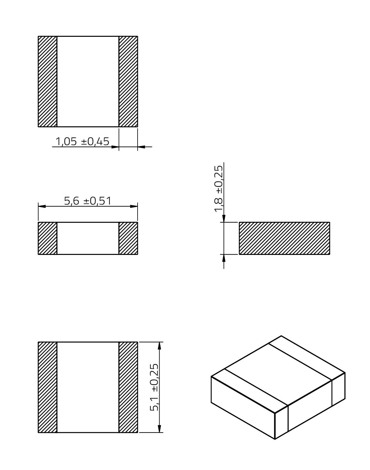 | 2220 | 5.6 | 5.1 | - | 1.05 | SMT |