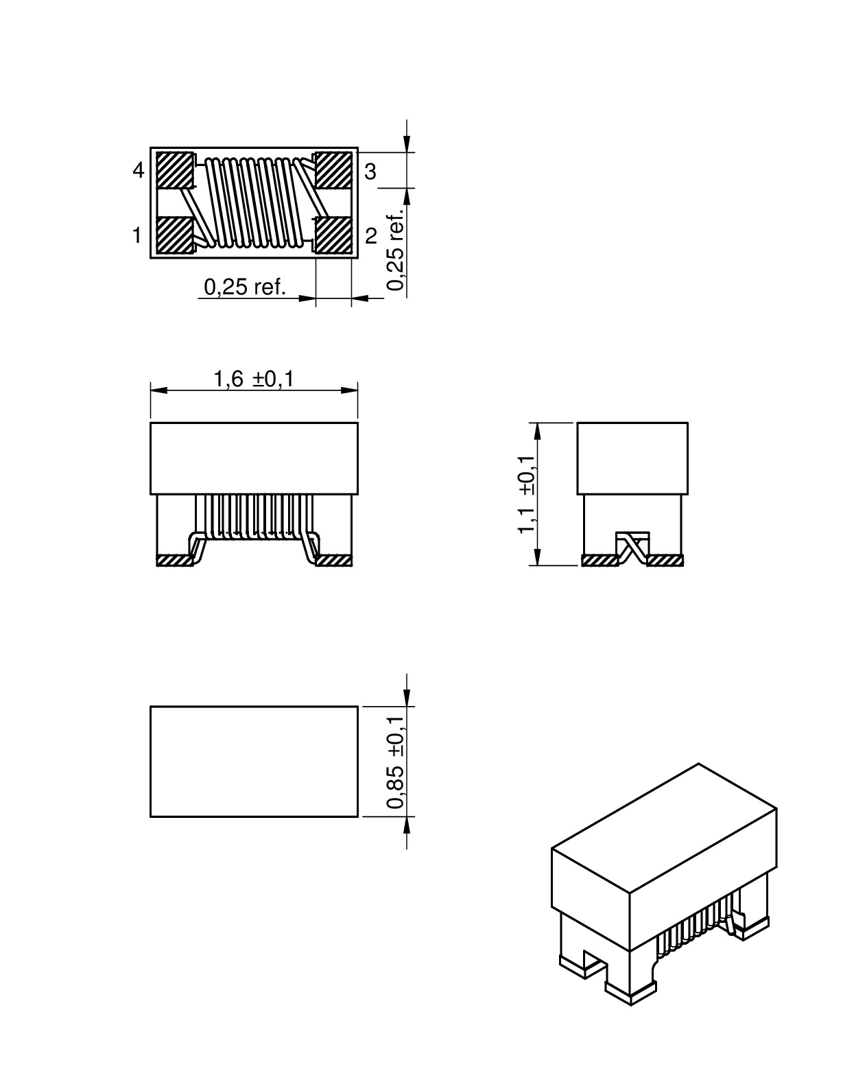 | 0603 | 1.6 | 0.85 | 1.1 | SMT | |||