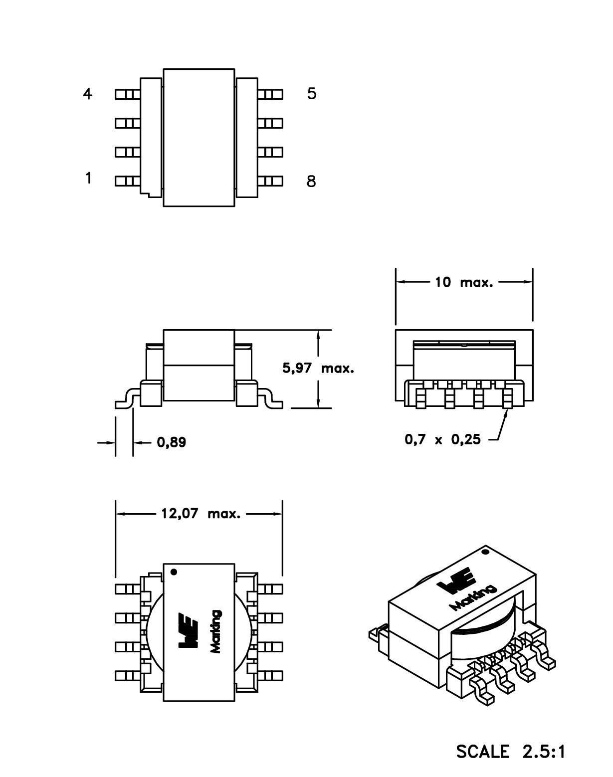 | ER9.5 | 10 | 12.07 | 5.97 | SMT | |||