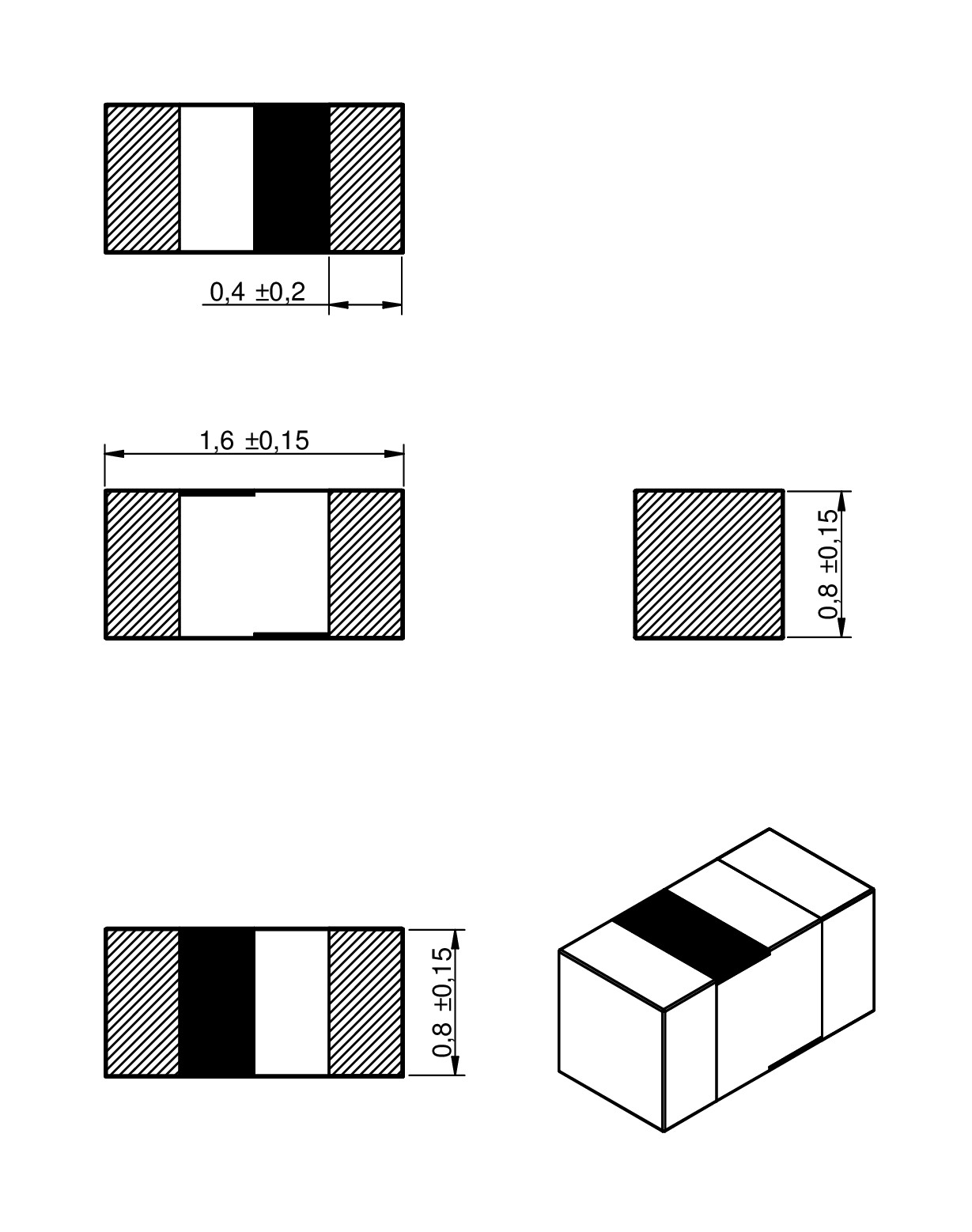 | 0603 | 1.6 | 0.8 | 0.8 |