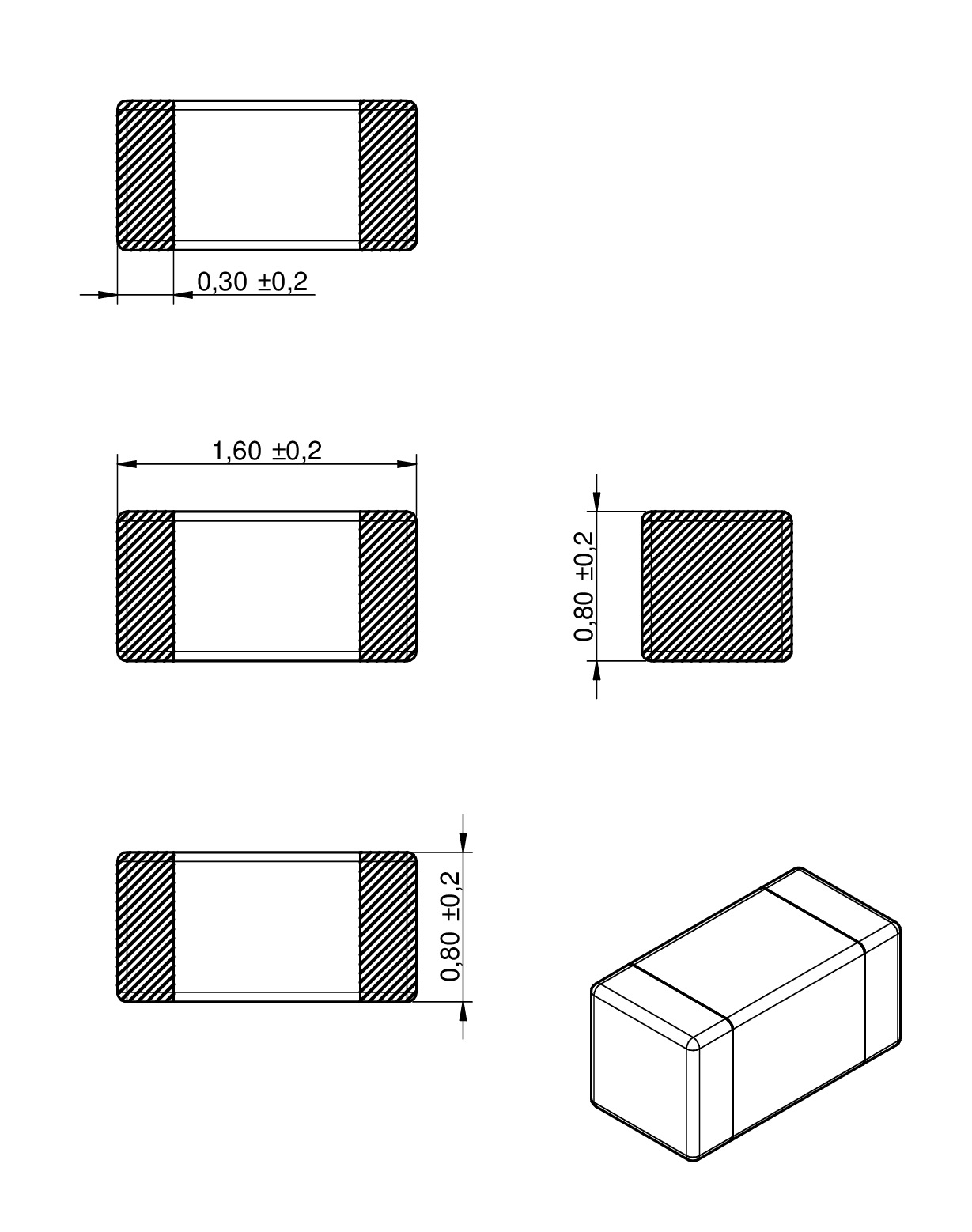 | 0603 | 1.6 | 0.8 | 0.8 | SMT | ||