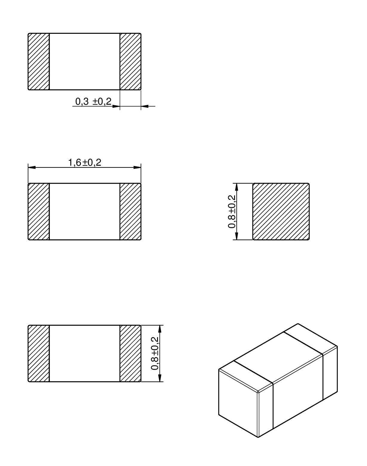 | 0603 | 1.6 | 0.8 | 0.8 | 0.3 | SMT | ||