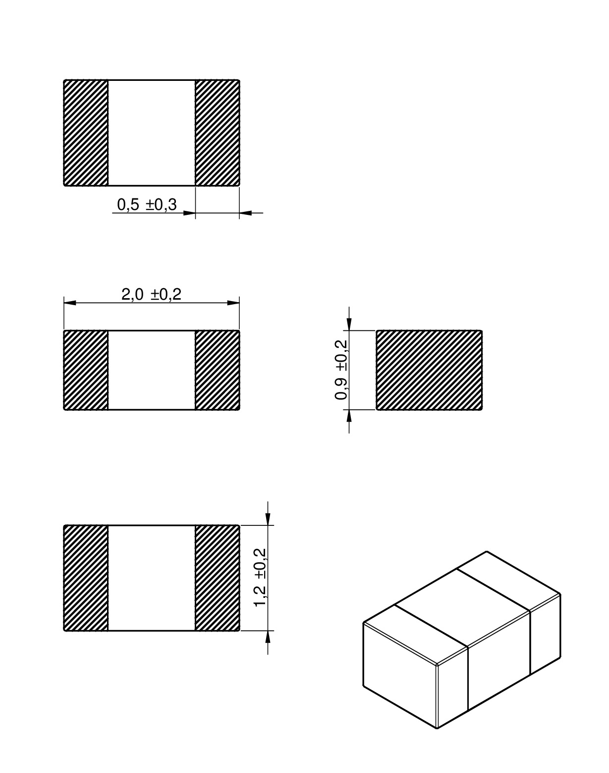 | 0805 | 2 | 1.2 | 0.9 | 0.5 | SMT | ||