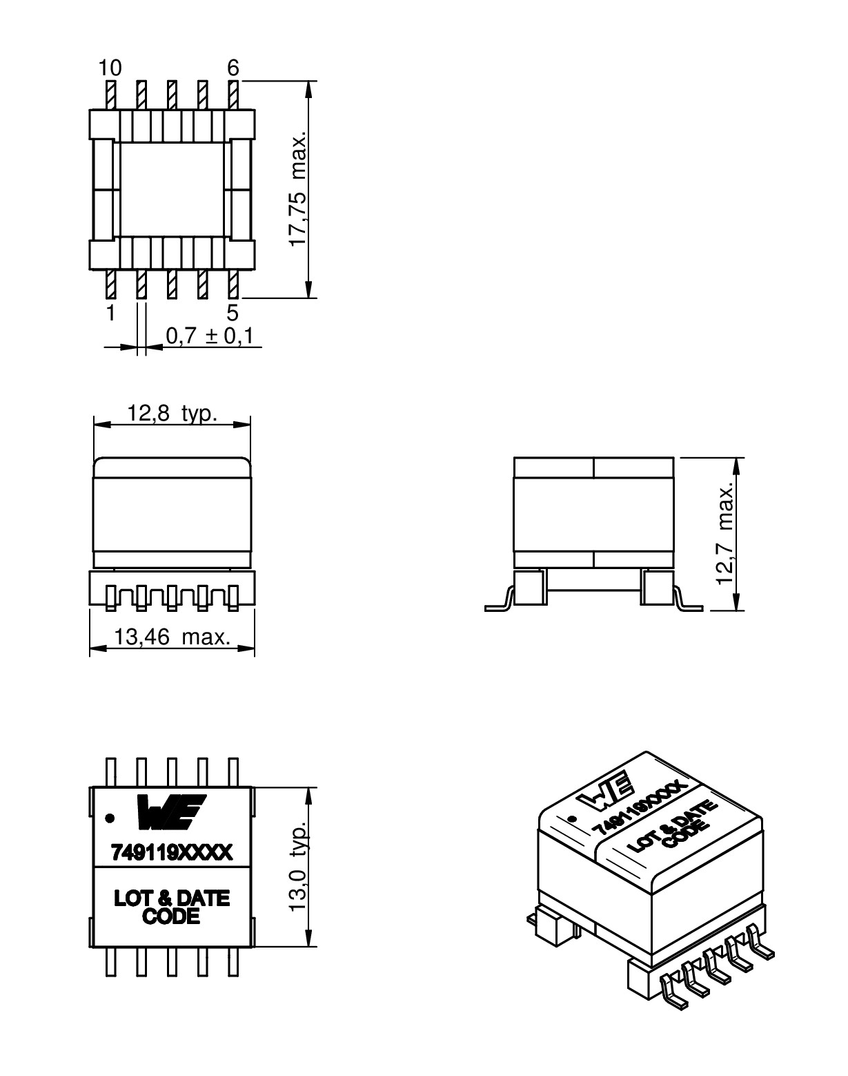 ![]() | 750310743 | SPEC | – | 10 Dateien | Aktiv i| Produktion ist aktiv. Erwartete Lebenszeit: >10 Jahre. | CCM Flyback | 37 - 57 V (DC) | 3.3 | 7.5 | – | – | – | – | 38 | 6.67:1:4 | 1500 | EP13 | 12.7 | 0.1 | 0.003 | 0.182 | SMT | |