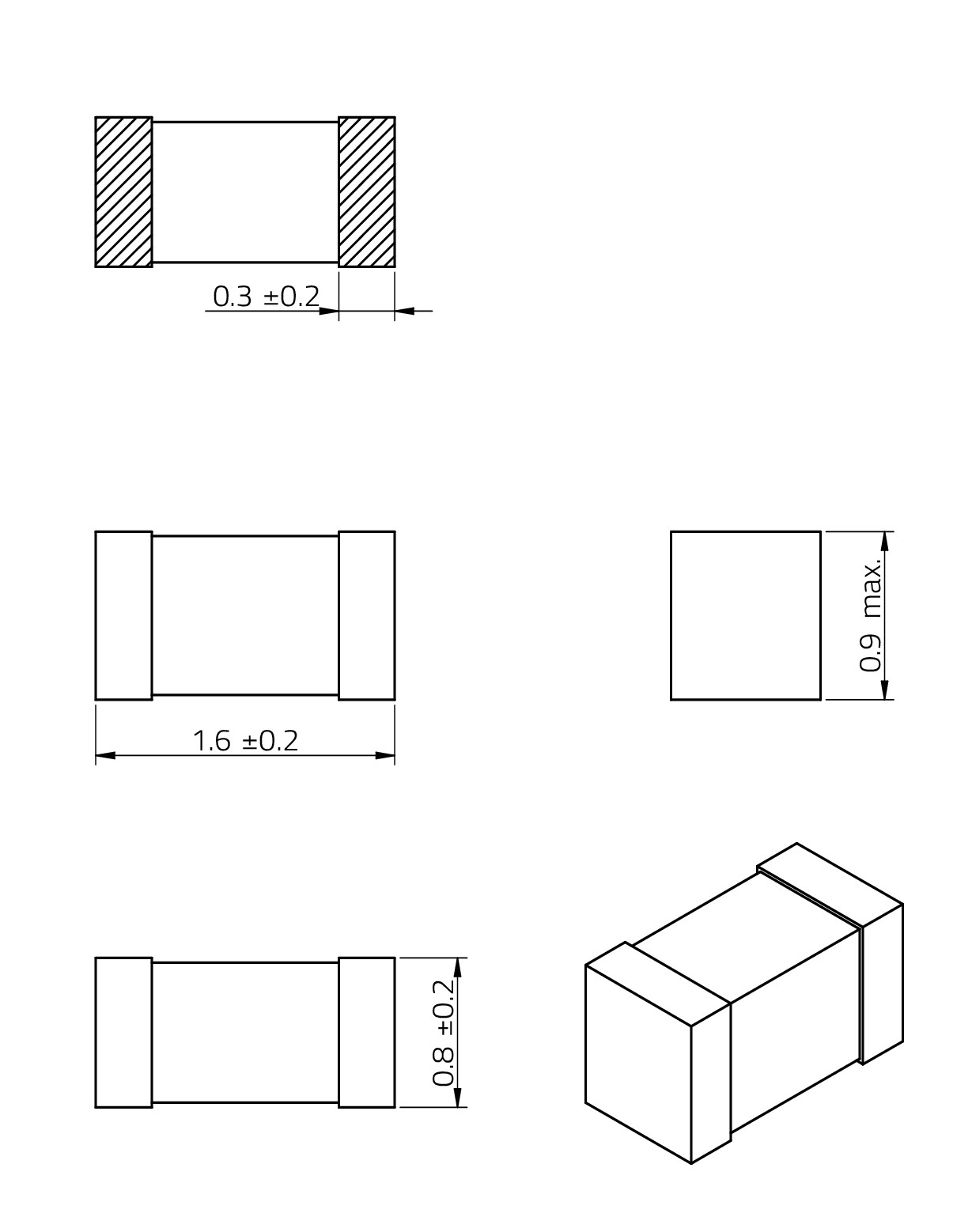| 0603 | 1.6 | 0.8 | 0.9 | 0.3 | SMT | ||