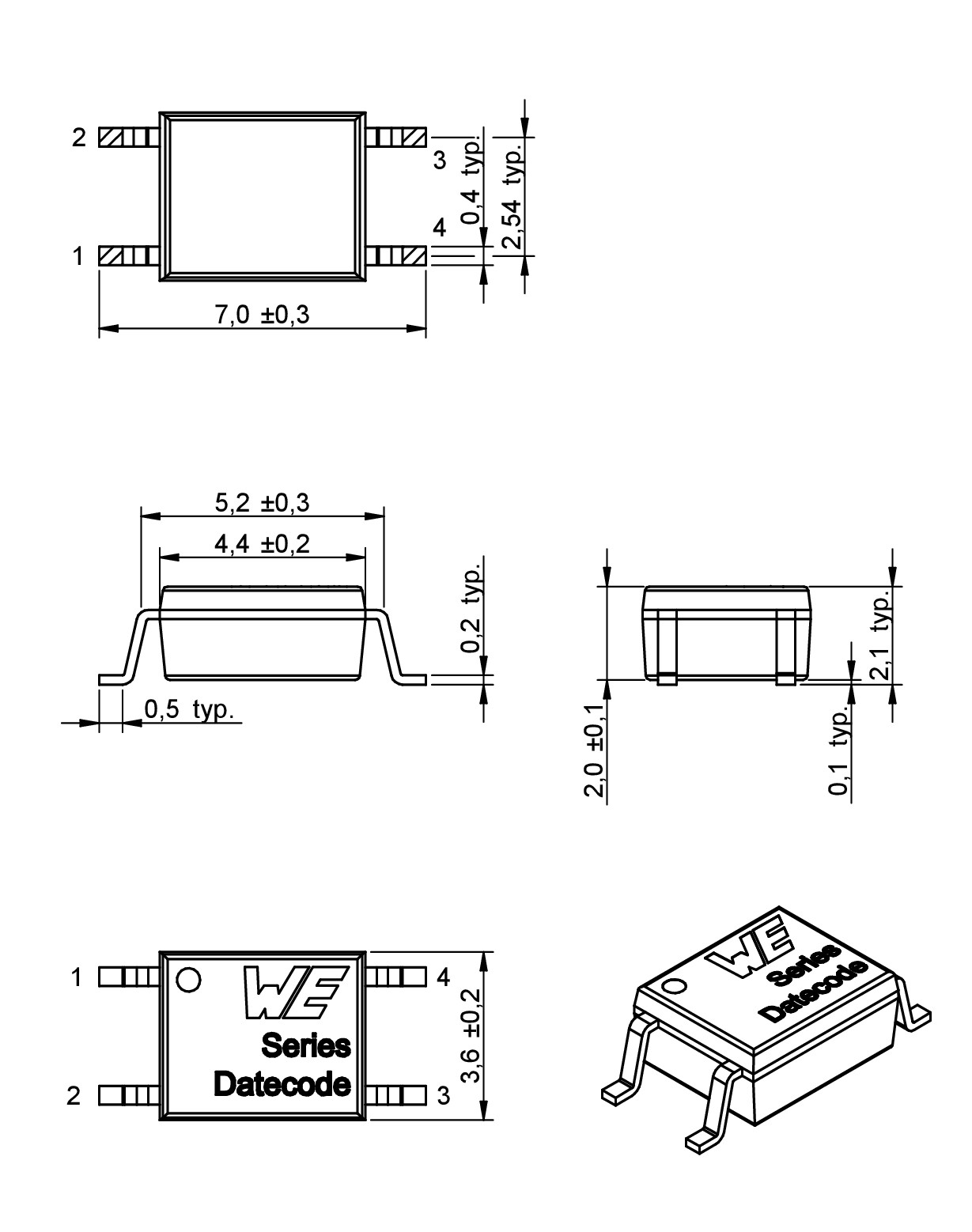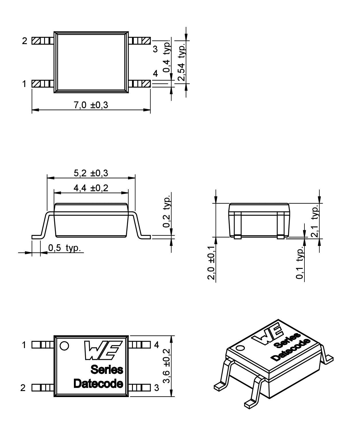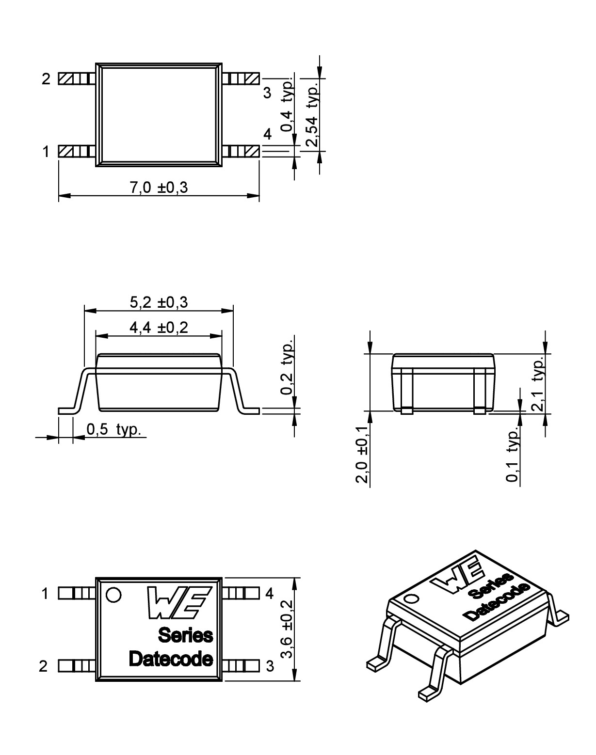 | 140354245100 | SPEC | 7 Dateien | Aktiv i| Produktion ist aktiv. Erwartete Lebenszeit: >10 Jahre. | SOP 4 | AC | 80 | – | IF = +/- 1 mA VCE = 5 V | 50 | 150 | 3750 | -55 °C up to +110 °C | ||