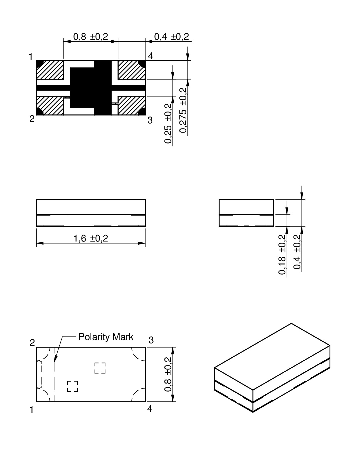 | 0603 | 1.6 | 0.8 | 0.4 | SMT |