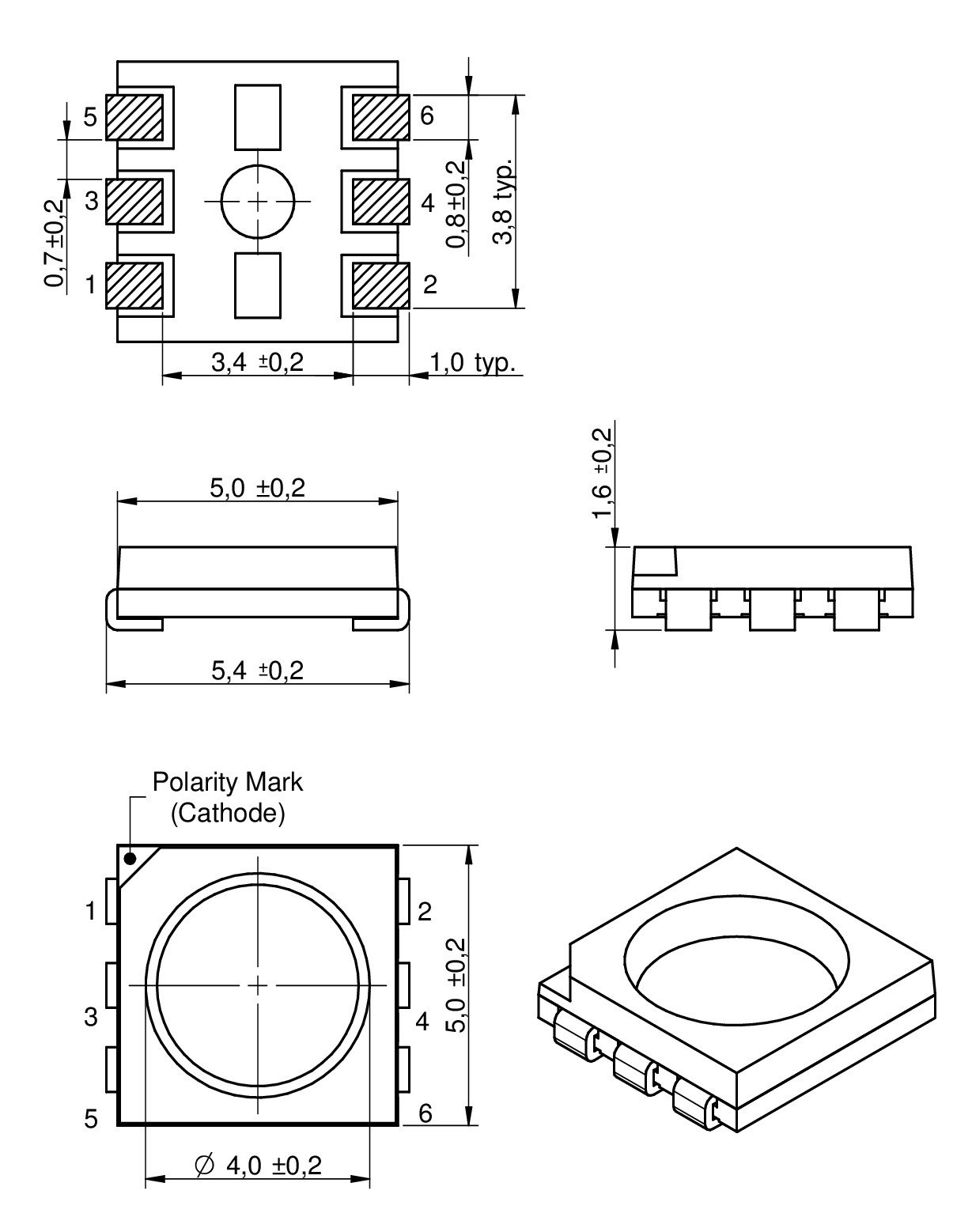 | 5050 | 5.4 | 5 | 1.5 | SMT |