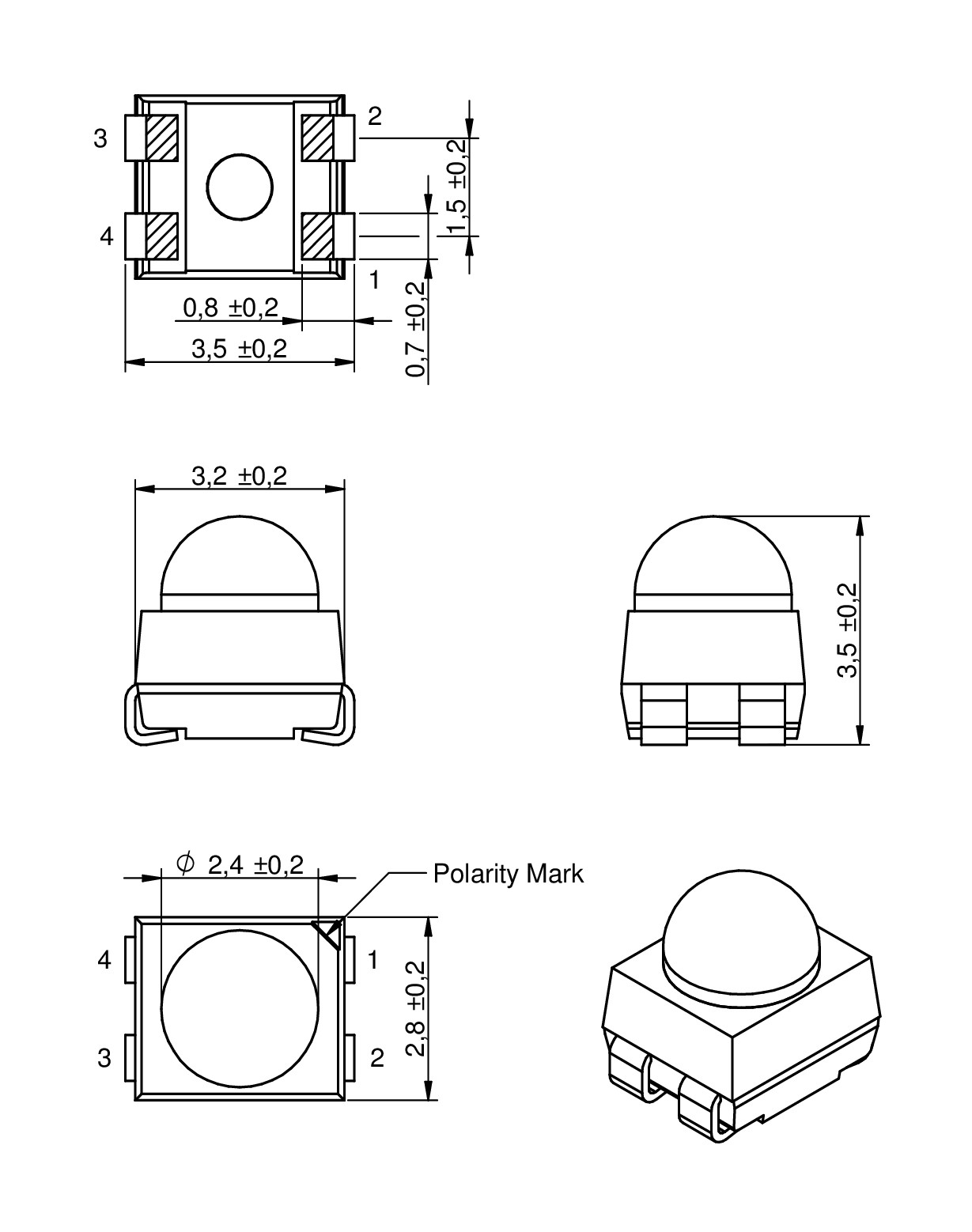 | 3528 PLCC 4 | 3.5 | 2.8 | - | SMT |