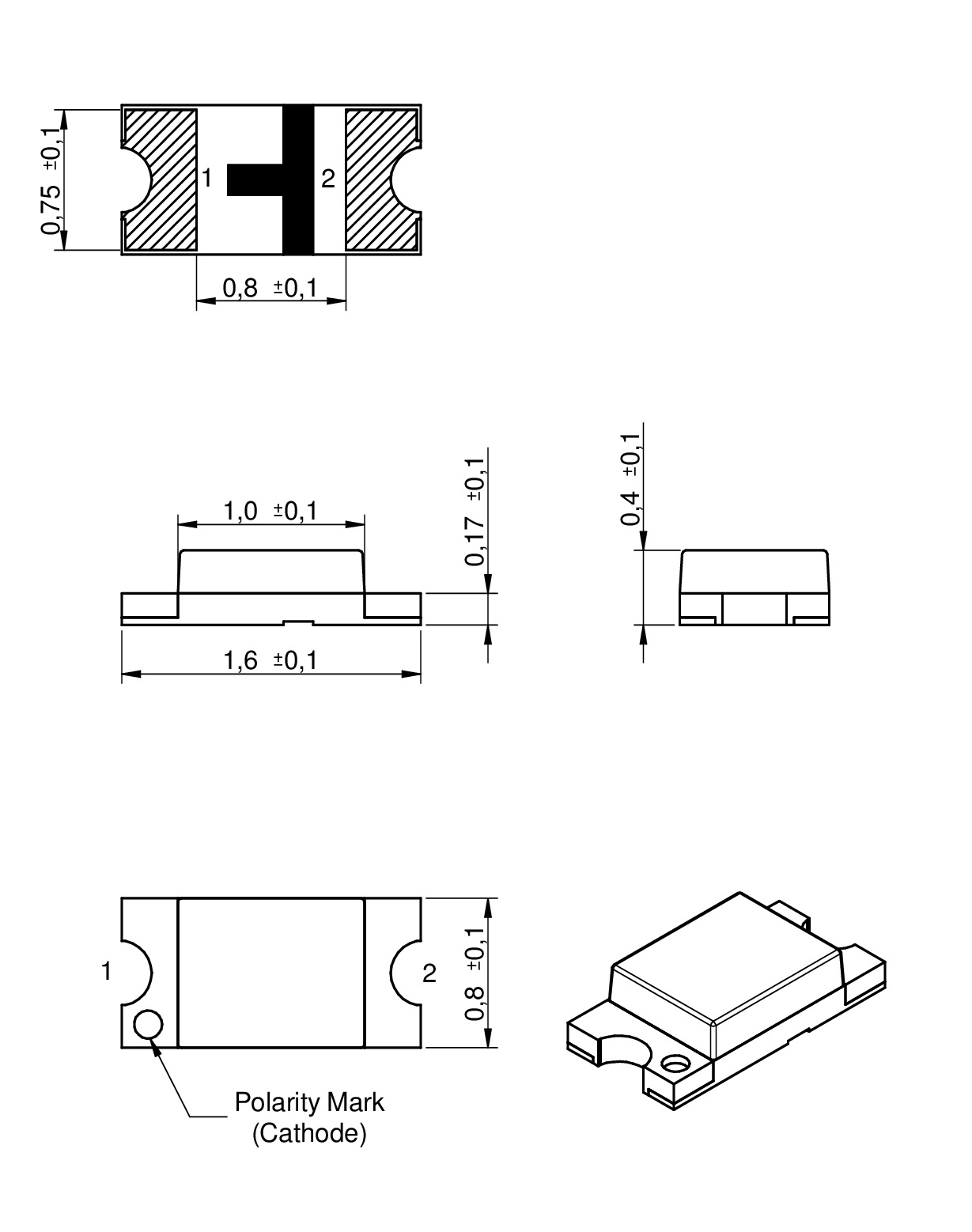 | 0603 | 1.6 | 0.8 | 0.4 | SMT |