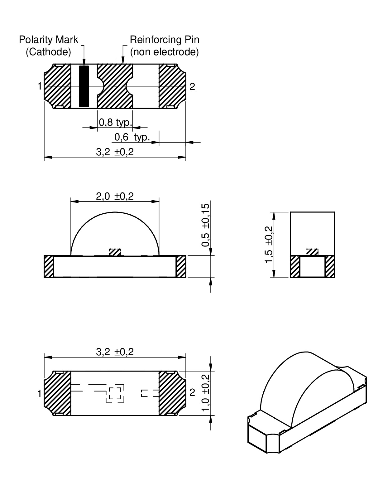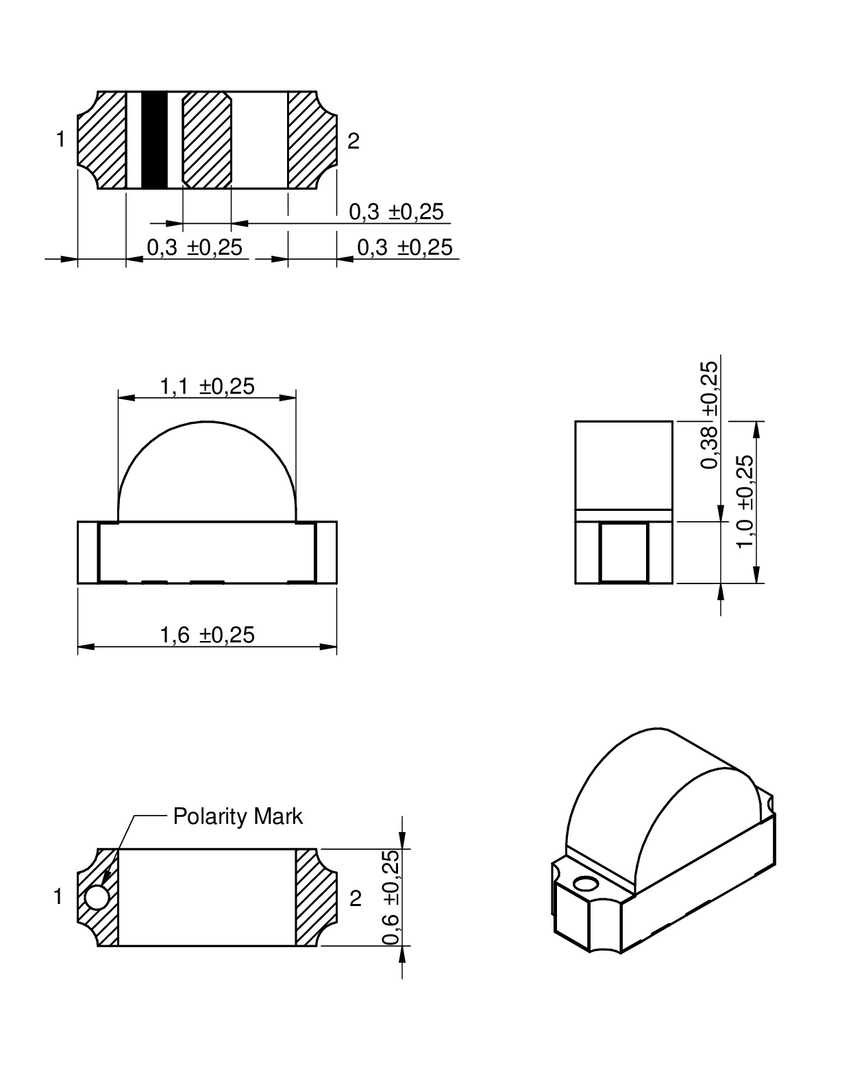 | 0603 Round | 1.6 | 1 | 0.6 | SMT | ||