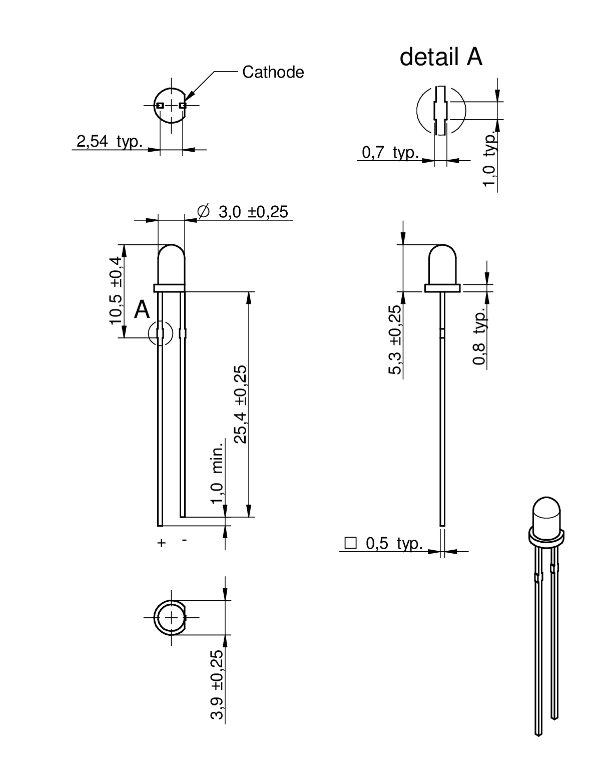 | 3 mm - without stopper | 3 | 3 | 5.3 | THT | ||