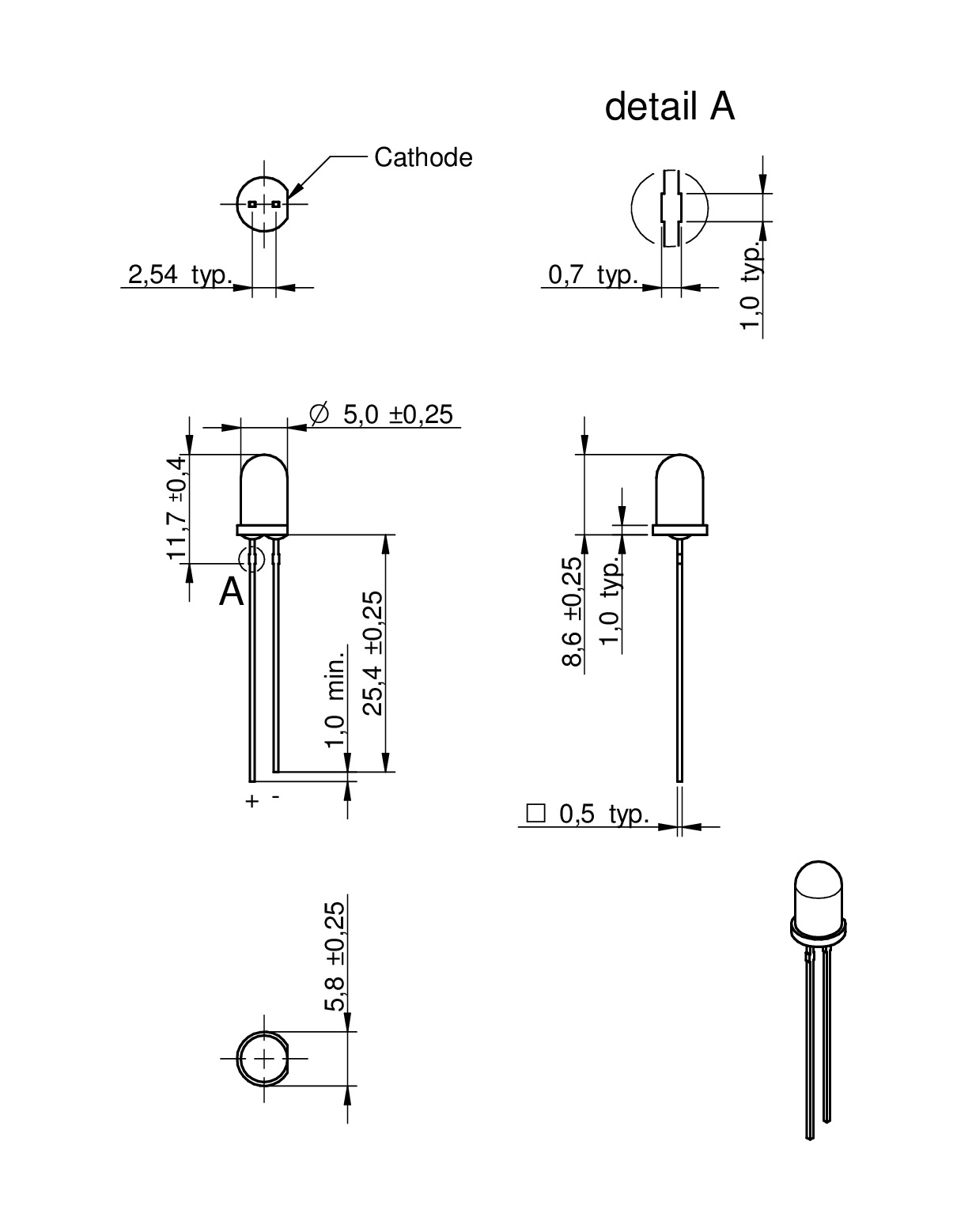 | 5 mm - without stopper | 5.8 | 5 | 8.6 | THT |