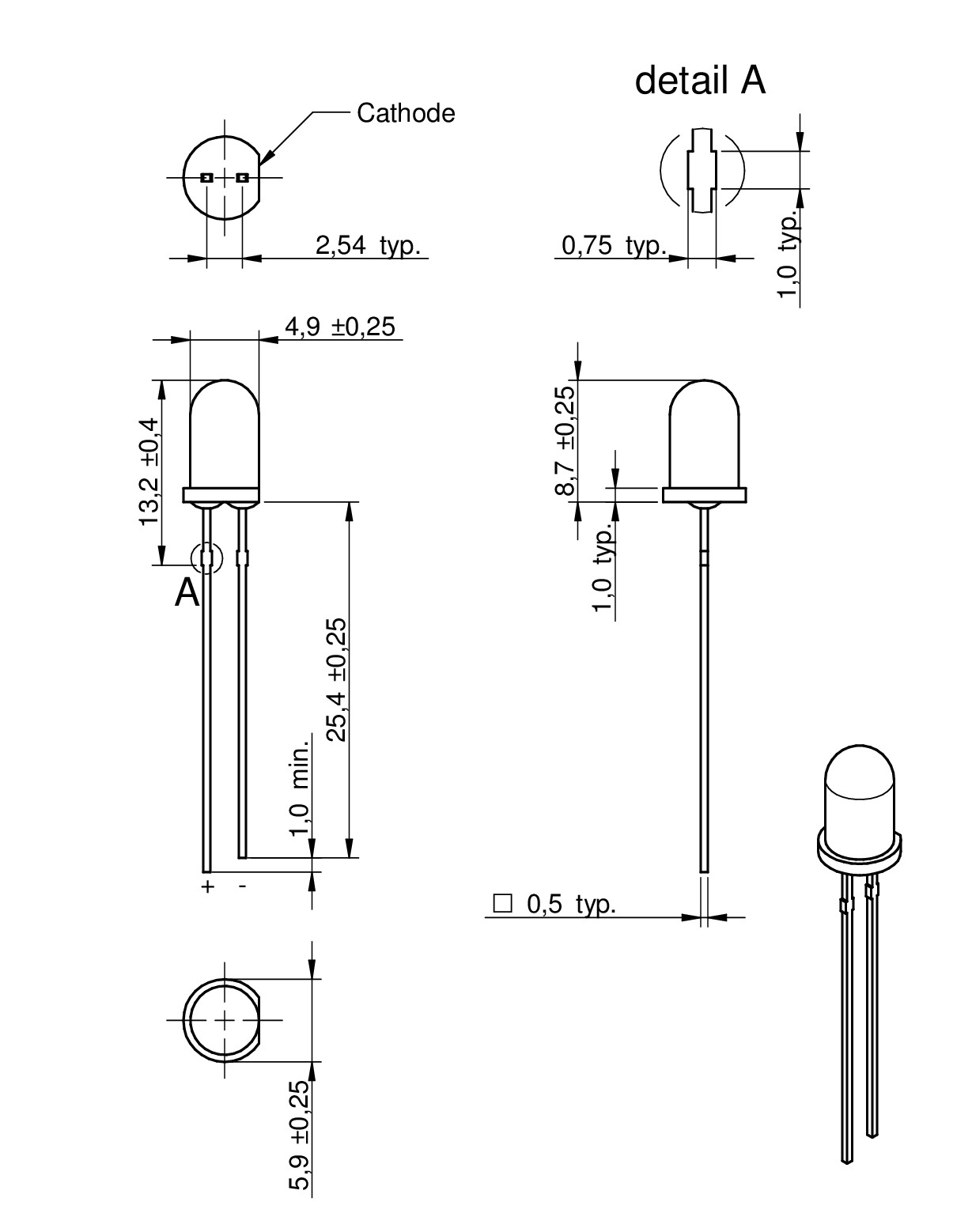| 5 mm - without stopper | 5 | 5 | 8.6 | THT |