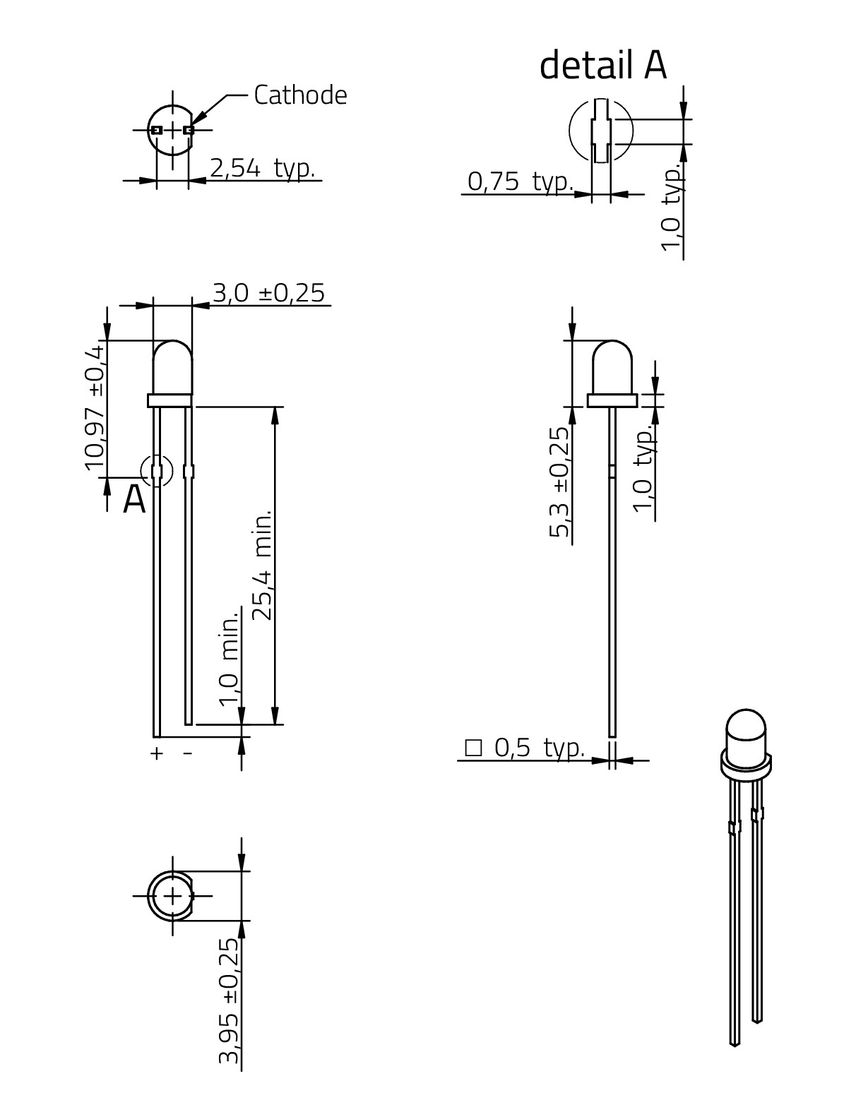 | 3 mm - without stopper | 3 | 3 | 5.3 | THT | ||