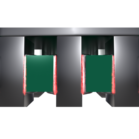Bezüglich der Langzeitzuverlässigkeit überzeugt REDCUBE PRESS-FIT mit dem niedrigsten Failure in Time Wert des Gesamtsystems. Dieser ist bis dreißig Mal besser als der einer SMD-Lötstelle. Beim Einsatz von REDCUBE PRESS-FIT ist eine zweiseitige Bestückung problemlos möglich, was eine sehr kompakte Auslegung von Baugruppen gestattet.