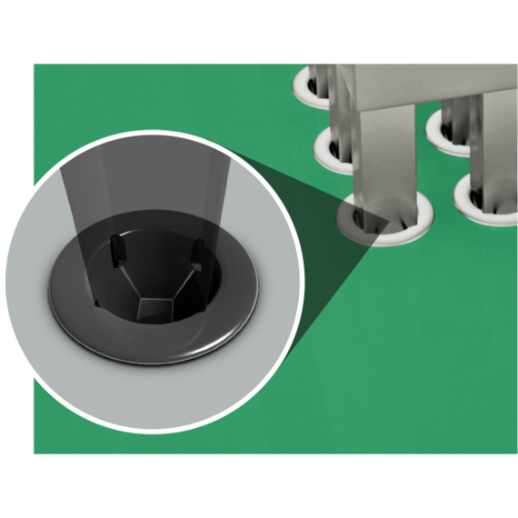 - Nahtloser und homogener Materialübergang zwischen Pin und Durchkontaktierung