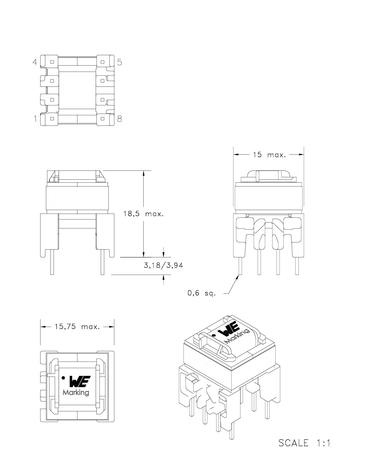 | EE13/7/6 | 15 | 15.75 | 18.5 | THT | |||