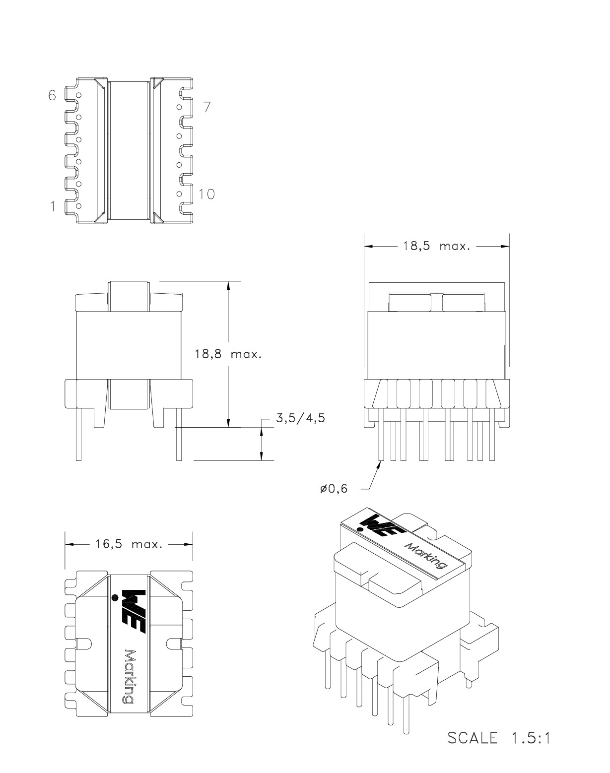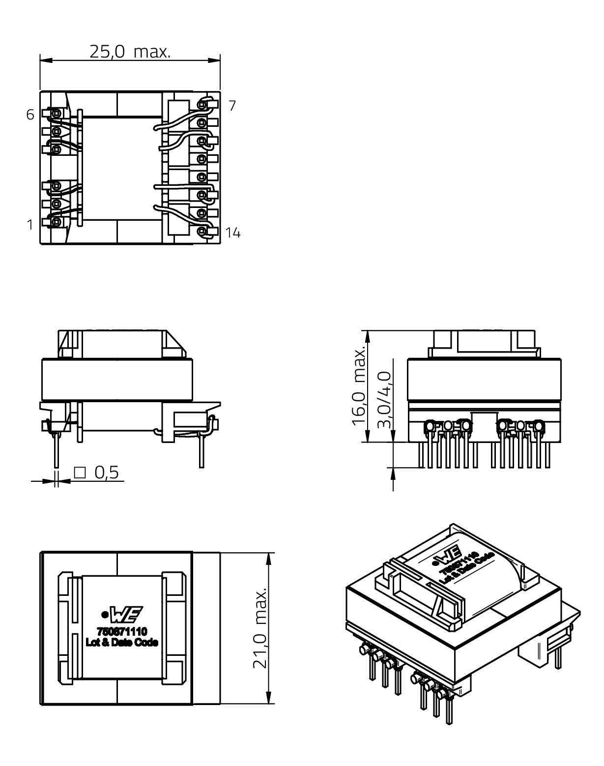 ![]() | 7508110345 | SPEC | 11 files | Active i| Production is active. Expected lifetime: >10 years. | 85 - 265 V (AC) | 12 | 0.5 | – | – | 6 | 0.48 | 4000 | 60 | 2 | 5.78:1:0.52 | 17 | 13.4 | 21.5 | THT | EE16/7/5 | ||