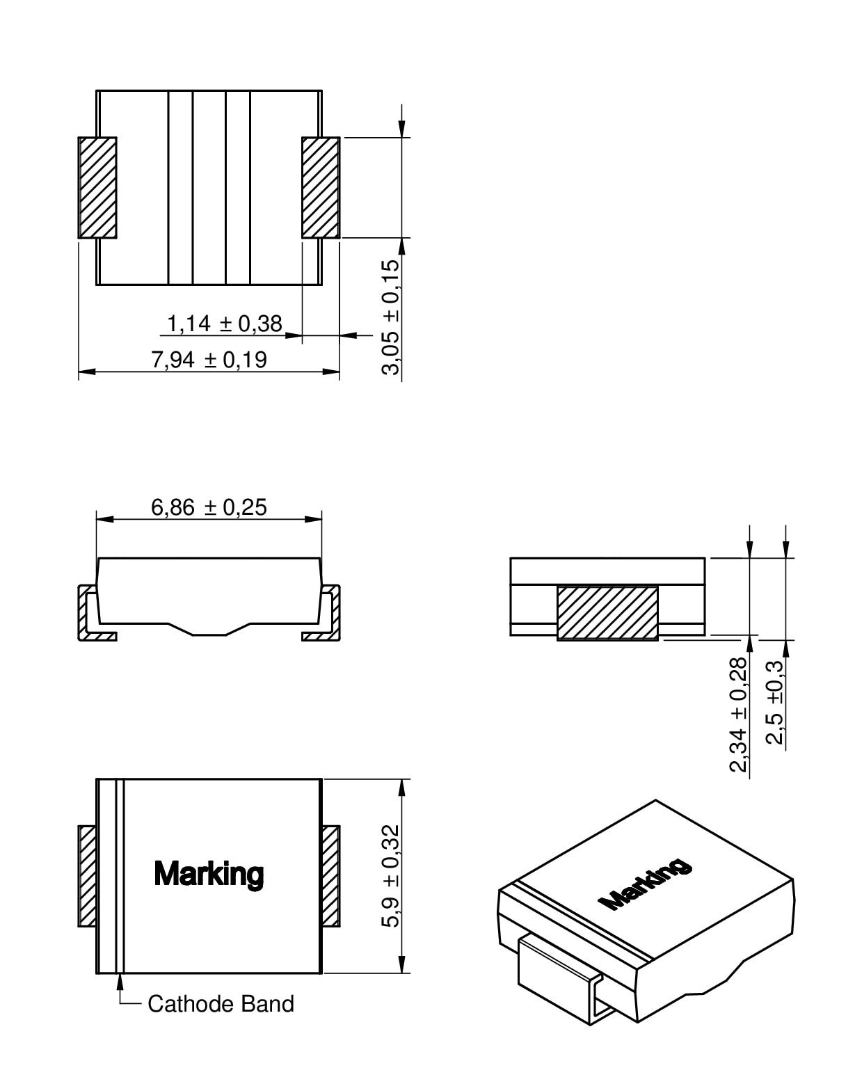 | DO-214AB 3000W Bidirectional | 6.86 | 5.91 | 2.5 | SMT |