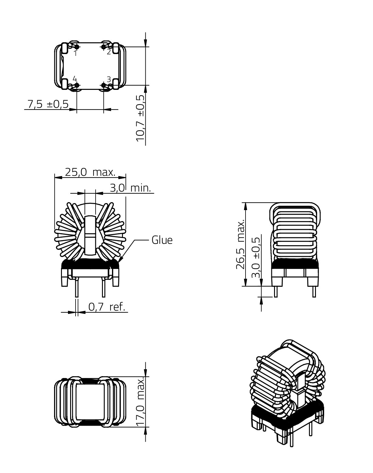 | 7448262510 | SPEC | 10 files | Active i| Production is active. Expected lifetime: >10 years. | 25 | 1 | 4.5 | 250 | 1500 | MnZn | 44 | 23.5 | 43 | THT | 744825 | ||