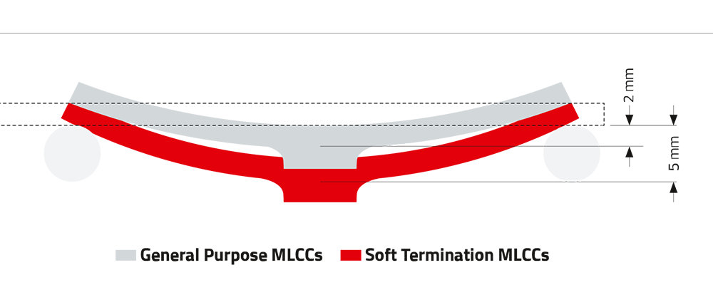 Die Kapazität eines Kondensators ist typischerweise auch von einer gleichzeitig angelegten Gleichspannung (DC Bias) abhängig und kann mit zunehmender Gleichspannung deutlich geringer ausfallen. Aus dem DC-Bias-/Kapazitätsdiagramm ist deutlich erkennbar, dass mit zunehmender Miniaturisierung des Bauteils der Nominalwert von 470 nF absinkt (rote Kurve).