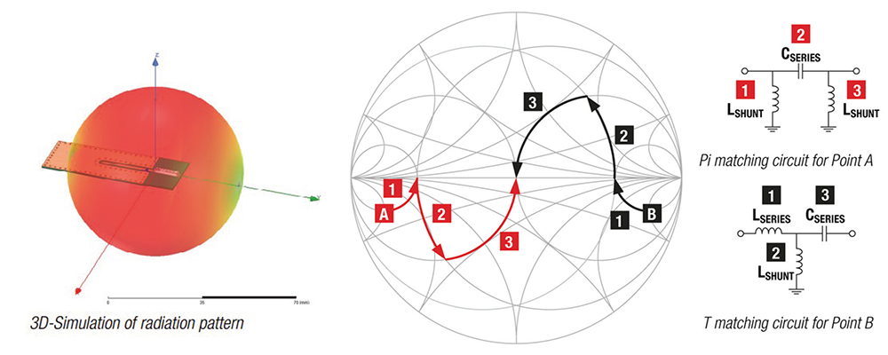 Mithilfe des Smith-Diagramm lässt sich ein Anpassungsnetzwerk für eine Antenne bestimmen. Dazu können Sie das Antenna Matching Design Kit 748001 verwenden. Das Kit enthält Chip-Antennen WE-MCA, keramische Vielschichtdrosseln WE-MK der Größe 0402, Hochfrequenz-Chipkondensatoren WE-MLCC der Größe 0402 und HF-Koaxialkabel WR-CXARY für Frequenzen bis zu 18 GHz.