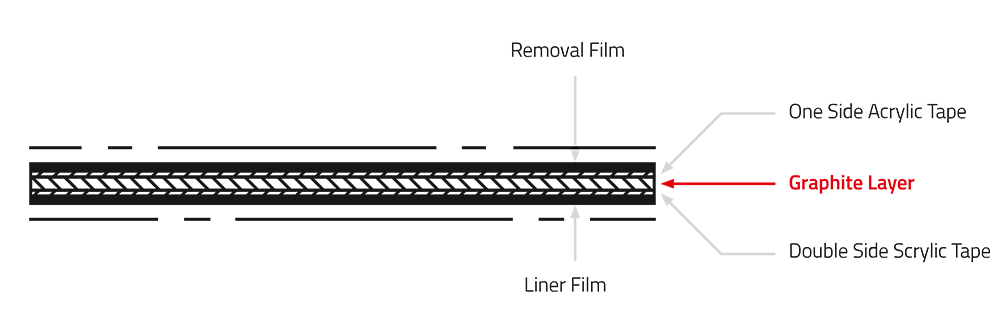 Eine Graphitfolie ist ein Wärmeverteiler aus synthetischem Graphit. Dies bedeutet, dass der größte Teil der Wärmeleitfähigkeit des Materials auf der horizontalen oder XY-Achse liegt. Dieser Effekt ermöglicht es der endgültigen Anwendung, noch größere Kühloberflächen zu nutzen, anstatt durch die Kontaktflächen der zu kühlenden Komponente begrenzt zu sein. Indem der Graphit um einen Schaumstoffkern gelegt wurde, verleiht er einem horizontalen Wärmeverteiler vertikale Leitfähigkeit.