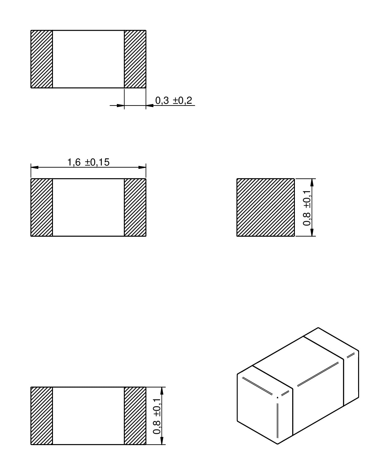 | 0603 | 1.6 | 0.8 | 0.8 | 0.3 | SMT | |||
