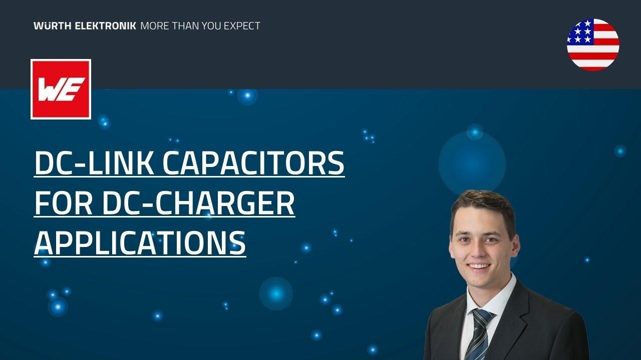 DC-Link capacitors are used in high-voltage applications to provide the necessary energy buffer between different DC power stages like a rectifier and a DC-DC Converter, DC-AC Inverter and others. Würth Elektronik eiSos presents the new WCAP-FTDB DC-Link Film capacitors to offer solutions for the high power density future applications in the e-Mobility and renewable technologies. We will provide insights into the calculation of the necessary capacitance and component selection for a DC-Charger application, as well as considering also the use of alternative electrolytic capacitors.