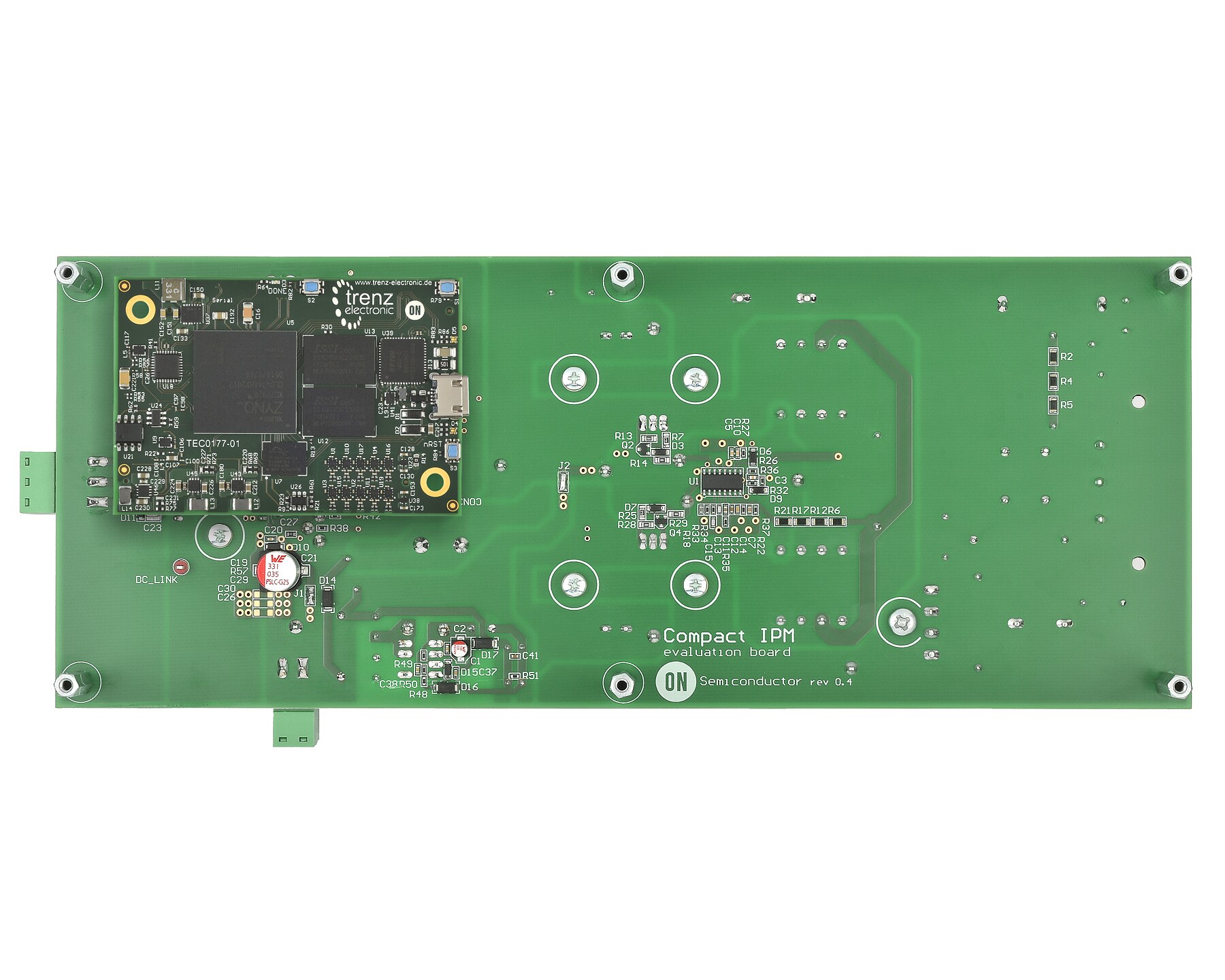 The SECO-1KW-MDK-GEVK is a complete reference design for three-phase motor drives, featuring the NFAQ1060L36T intelligent power module in a DIPS6 package, and part of the Motor Development Kit (MDK). Rated for 230 Vac input and delivering up to 850W. All the necessary system blocks for a motor drive are part of the solution: EMC filtering and rectification stage, interleaved two-channel PFC, auxiliary power supplies, three-phase inverter and measurement and protection. The graphical user interface ensures an easy startup for evaluation purposes running voltage/frequency control. As part of the MDK the Compact IPM power module motor drive is compatible with the powerful Universal Controller Board (UCB) enabling high-end control strategies and AI capabilities for industrial motor control.