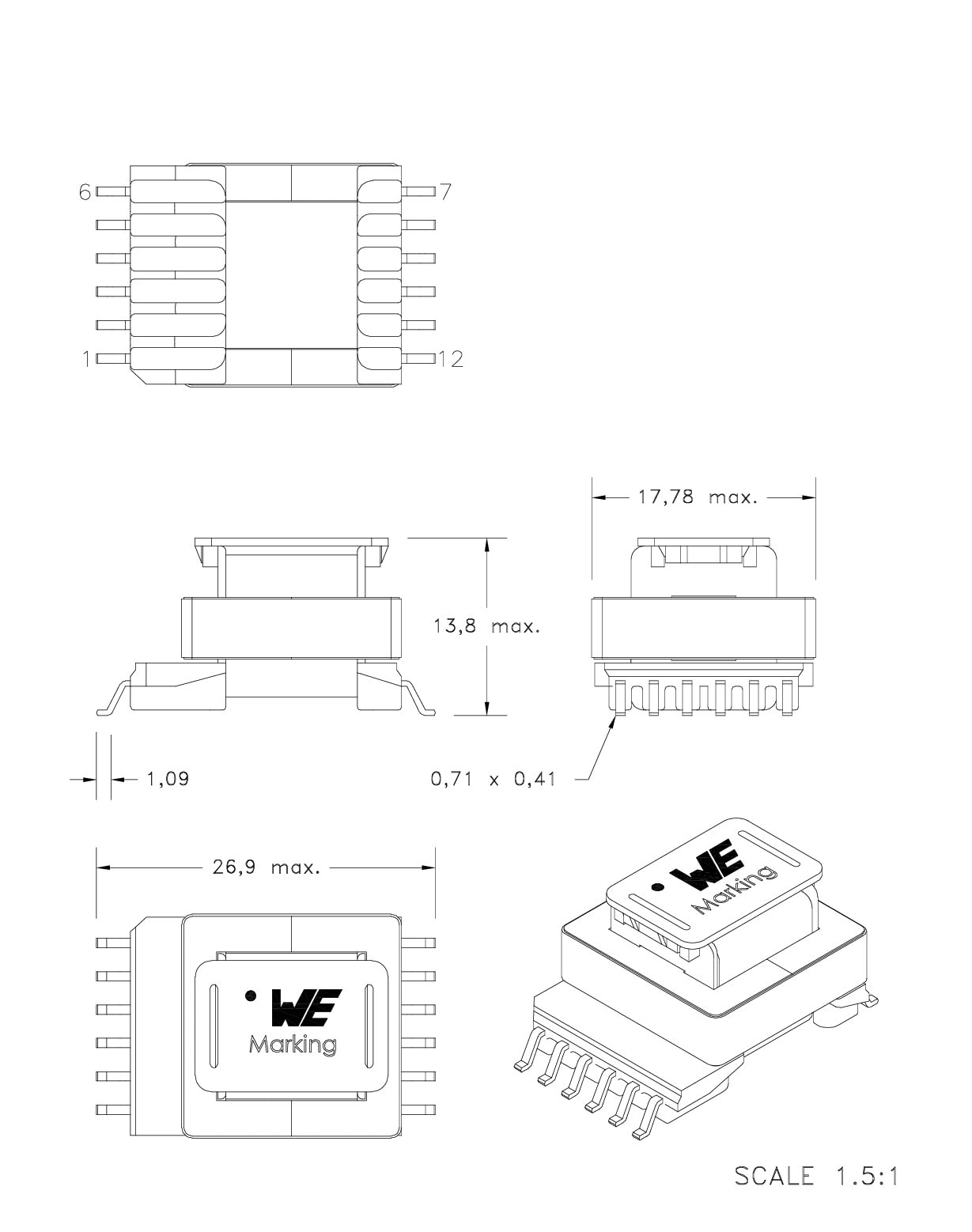 ![]() | 7508170311 | SPEC | 9 files | Active i| Production is active. Expected lifetime: >10 years. | 55 - 265 V (DC) | 12 | 0.42 | – | – | 16 | – | – | 150 | 0.491 | 5.75:1:1.31 | 860 | 3000 | 13.8 | 23.9 | 11 | SMT | EE13/7/4 | ||