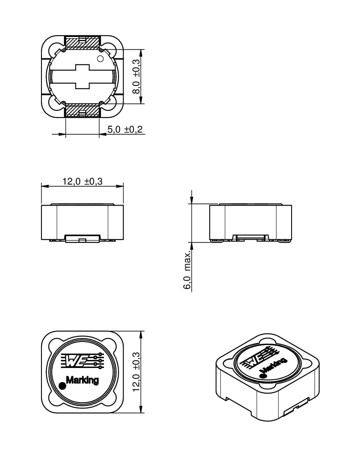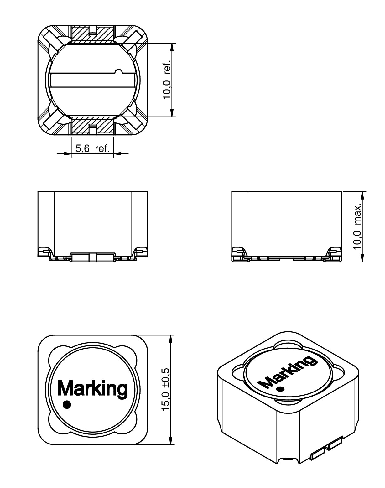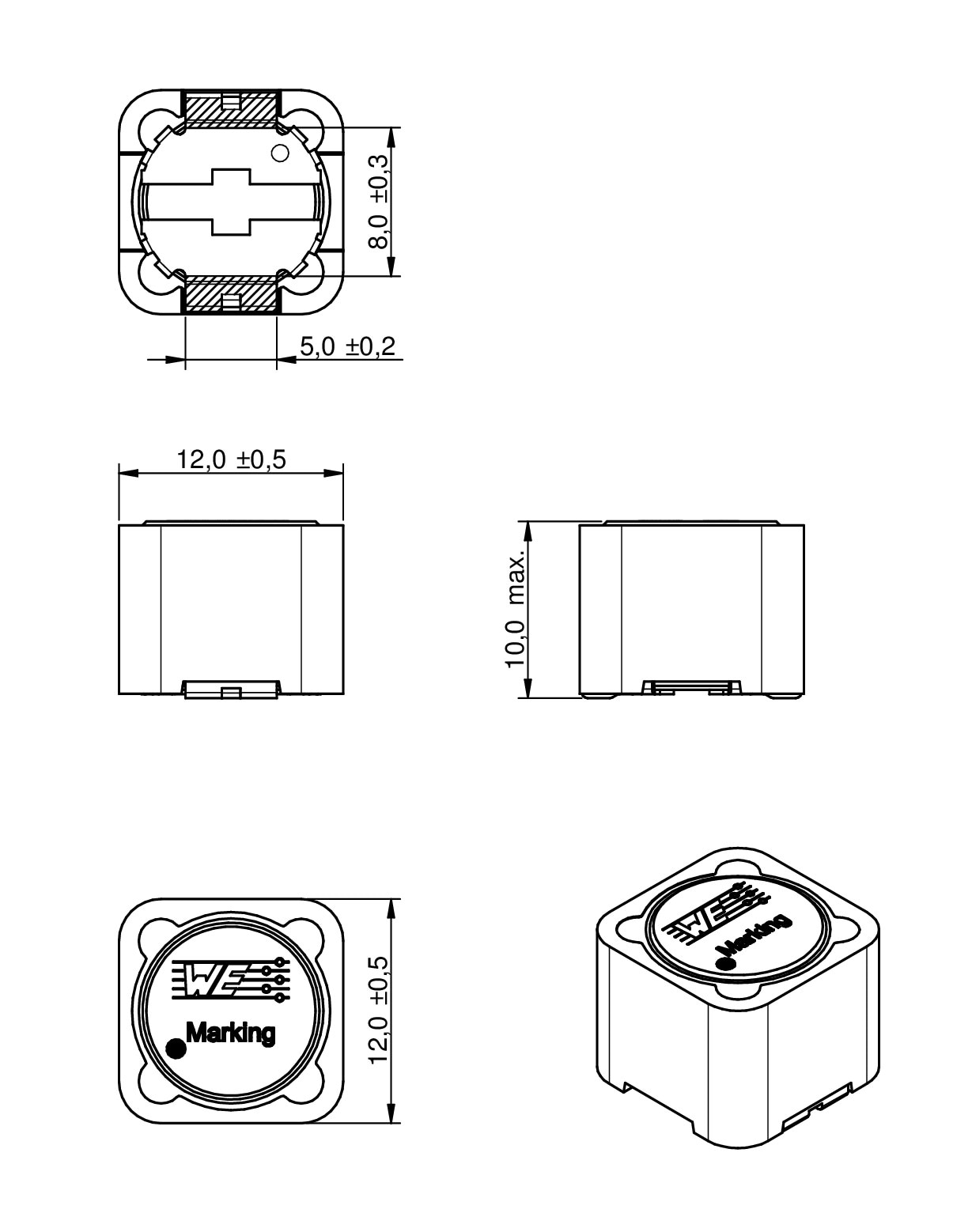 The base is available in two different variants and connects the component to the PCB to achieve mechanical stability. The windings are made of copper with very low RDC and RAC to ensure consistency and efficiency. The core is the heart of the WE-PD and is made of NiZn for a high dielectric strength or MnZn material, enabling the inductor to provide high saturation currents and low core losses while an advanced shielding technology with an outside air gap not only reduces unwanted noise and electromagnetic interference but also avoids eddy current losses in the windings.