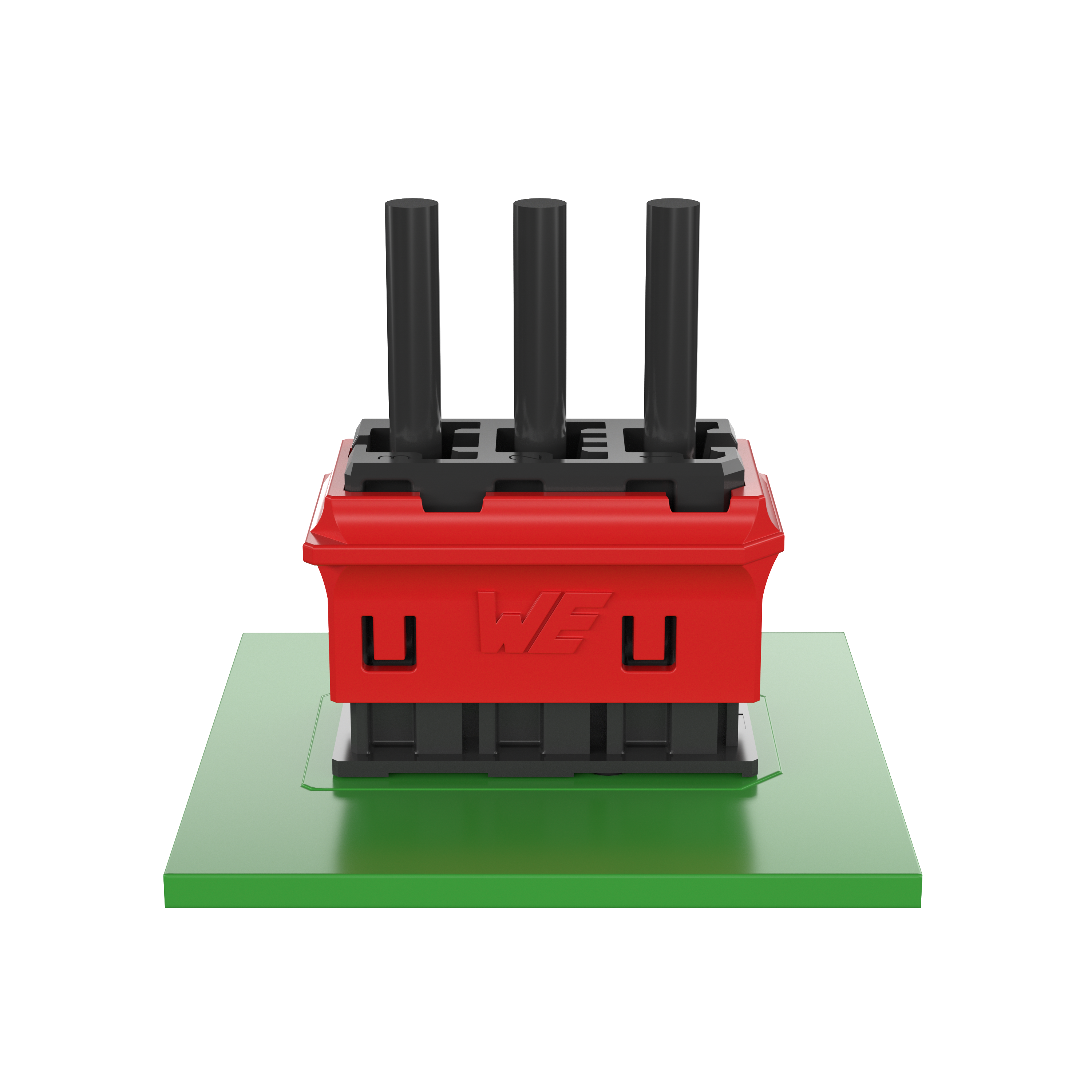 New solderless direct connector WR-WSP for power applications. It has integrated reverse polarity protection for the right mating and active locking with acoustic and haptic feedback.
