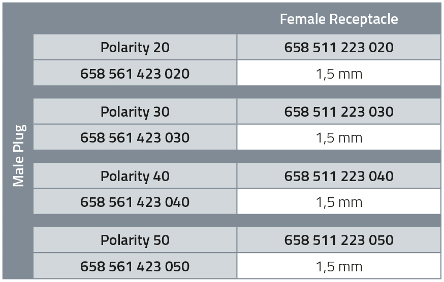 ![]() | 658511223040 | SPEC | 7 files | New i| Product is new in our portfolio and production is active. Expected lifetime: >10 years. | 0.5 | 40 | 1.2 | Receptacle | 300 | 50 | 60 | -40 °C up to +85 °C | 658561423040 | – | |