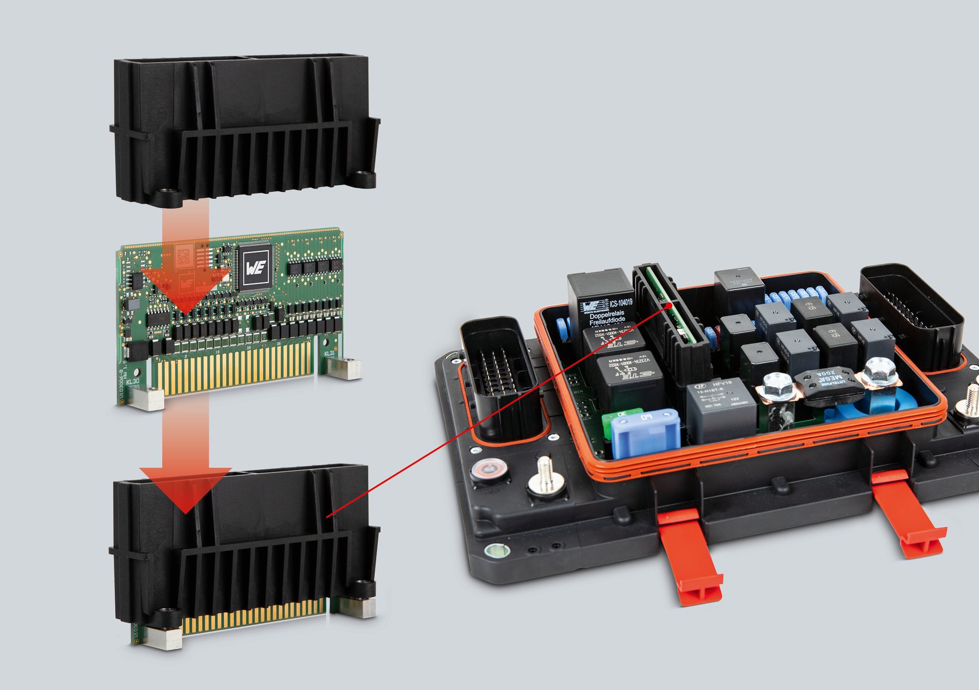 The CDM-A16 module is a plug-in controller for power distribution systems in vehicles and extends them with programmable control and diagnostic functions.