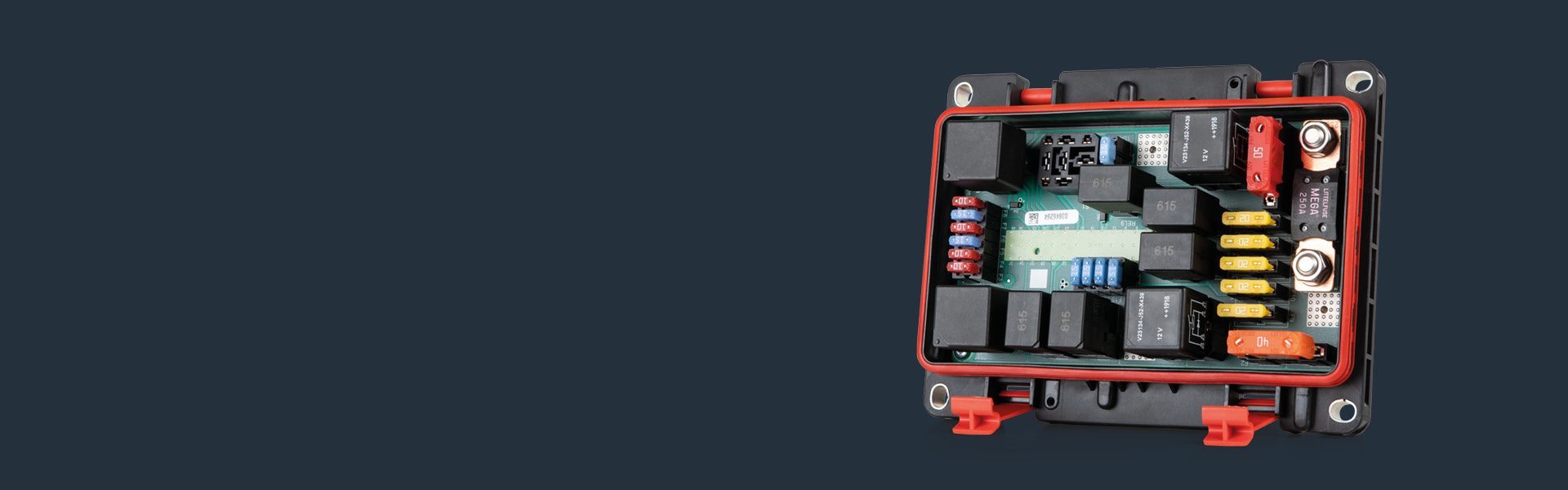 The REDline Power Box M Plus is the ideal solution when the power distribution has to be positioned between the engine’s and driver’s compartment. The integration of a MEGA fuse on the outside of the box allows the protection of the components and creates a secured power line.