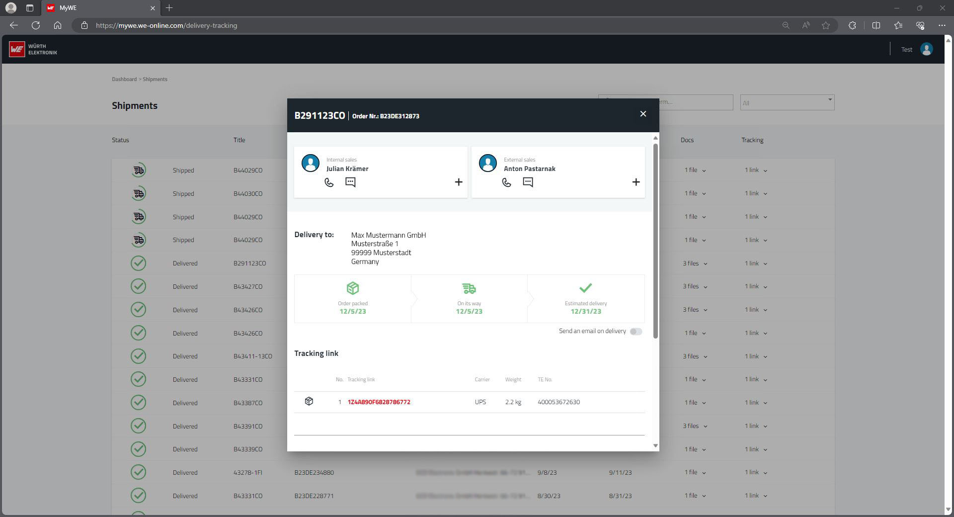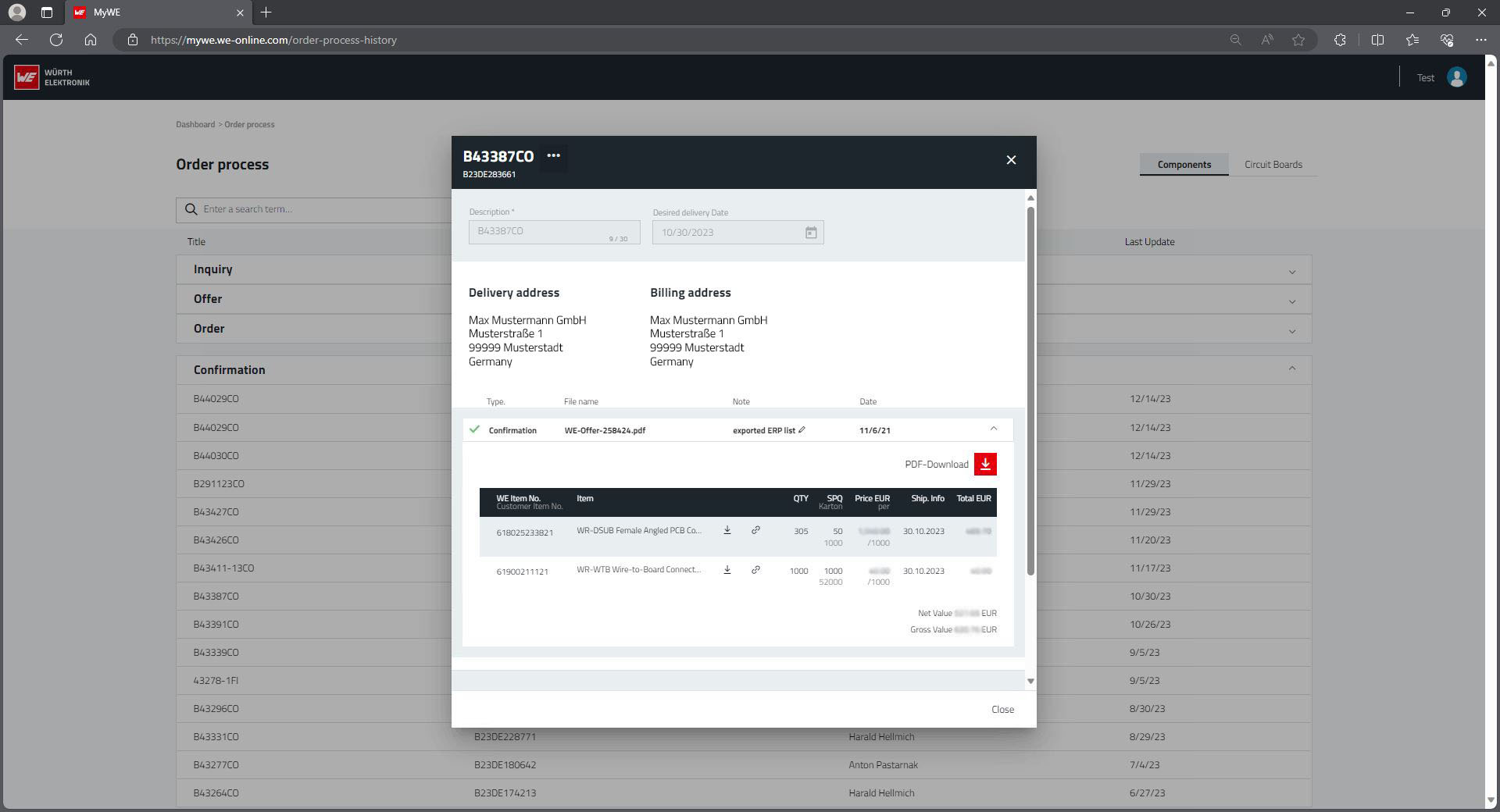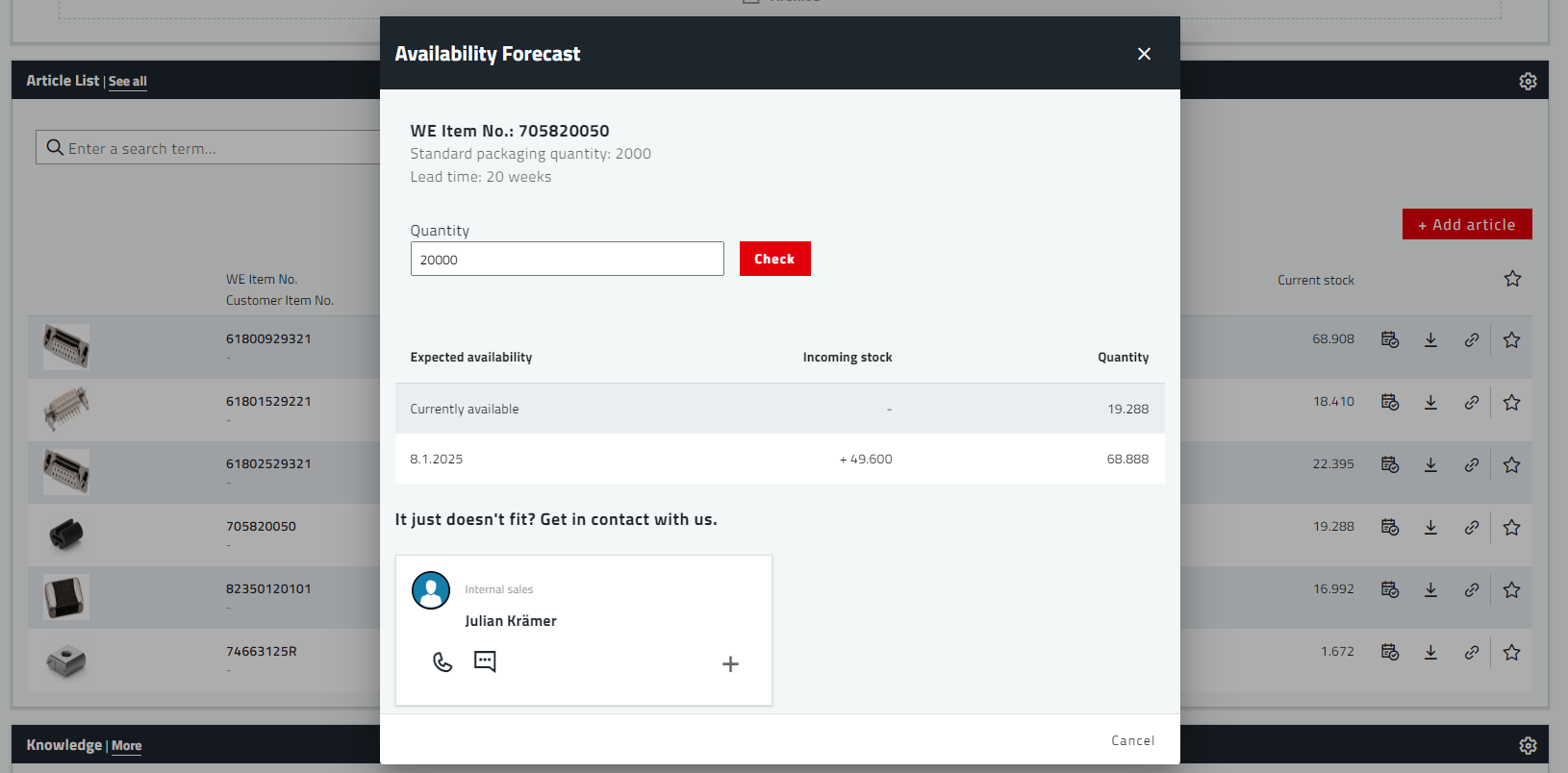 There is no substitute for personal contact - your contact persons at Würth Elektronik and their contact details are displayed for all processes and can be reached by you.