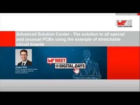 This presentation was part of our virtual conference (26-29 Apr): WE meet @ Digital Days 2021 With the Advanced Solution Center (ASC), the PCB division of Würth Elektronik is able to offer the possibility of making special and unusual PCB designs come true - and not just as low-yielding prototypes, but always with the background of series production. This presentation introduces this innovative division of Würth Elektronik Circuit Board Technology and uses the example of stretchable printed circuit boards to show how unusual PCB needs can be turned into hardware suitable for series production.