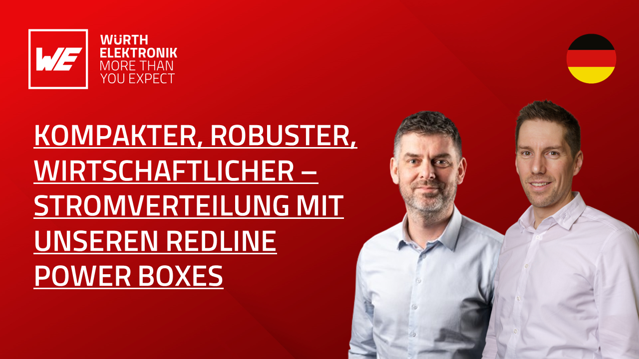 Unsere REDline Power Boxes sind eine modulare Plattform für Stromverteilung, Signaltransfer und Steuerung von Funktionen in Nutzfahrzeugen und mobilen Maschinen. Die Plattform steht für platz-, zeit- und kosteneffiziente Lösungen und besteht aus kundenspezifischen elektrischen Systemen in standardisierten IP-geschützten Gehäusen. In diesem Webinar geben wir einen Überblick über unsere bestehende Plattform und zeigen deren Mehrwerte im Vergleich zu herkömmlichen Stromverteilerlösungen auf. Unsere Experten, Stefan Hartmann (Vertriebsleiter DACH & Japan) und Jean-Baptiste Delcroix (Leiter von Würth Elektronik Frankreich und Produktmanagement) werden Sie durch das Webinar führen und Ihnen anhand von praktischen Anwendungsfällen aufzeigen, wie unsere Power Boxes kundenspezifisch konfiguriert werden können, um unterschiedlichste Anforderungen und Anwendungen umzusetzen.