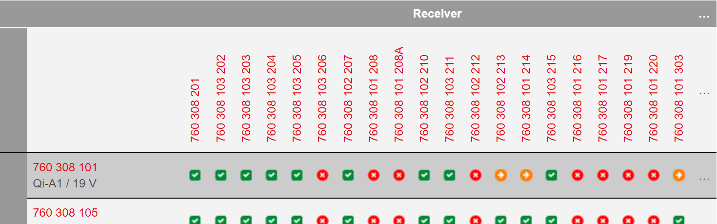 Use of the same WPT coil component on both Transmitter (TX) and Receiver (RX) sides is recommended, for optimum size matching and best efficiency. But device constraints often mean different WPT coil designs on TX and RX sides is necessary, and this table is a guide to compatible coils.